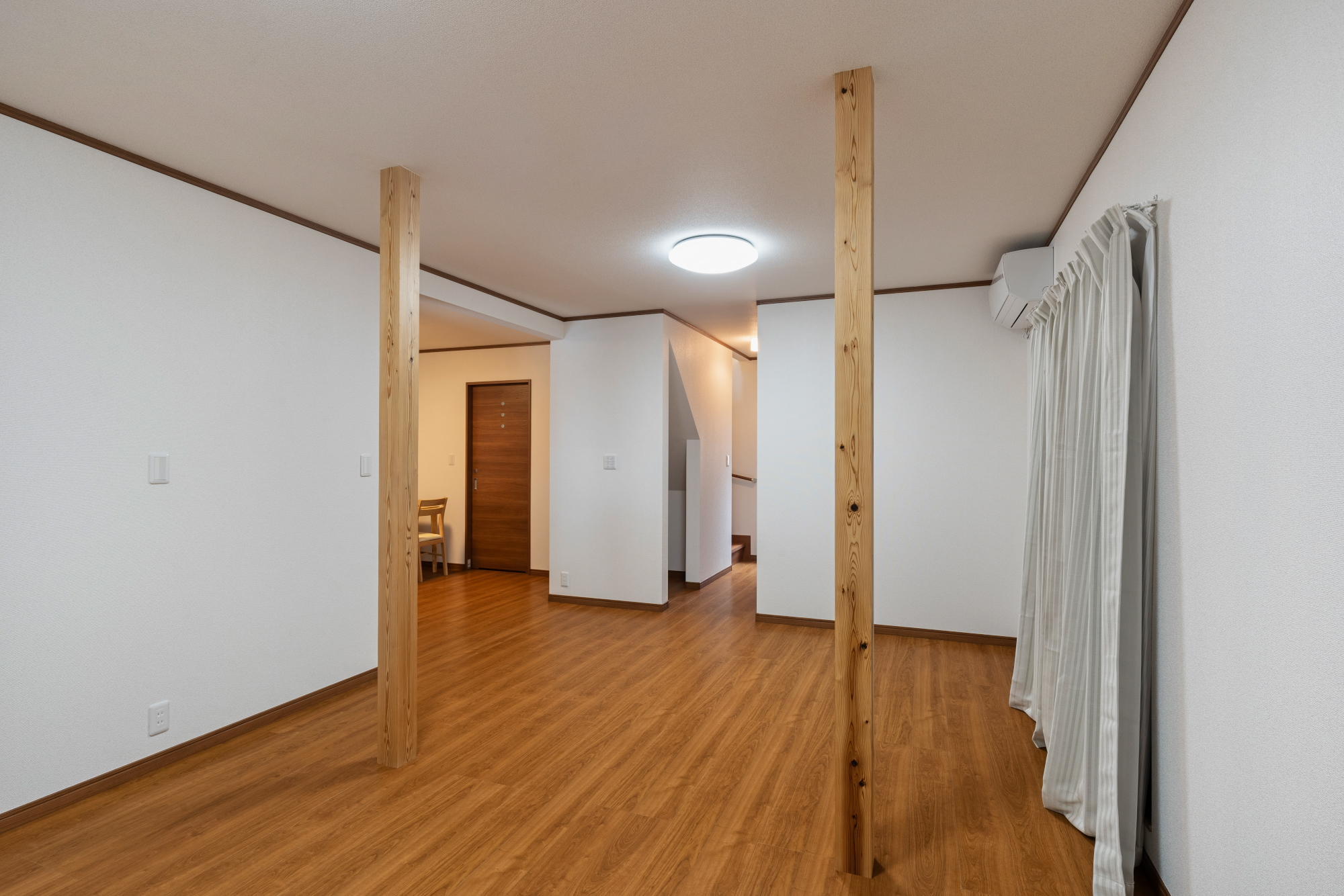 子ども部屋は、あえて大部屋を作り将来的にお子様のお部屋として使ったり仕切って収納にしたりと様々な用途に活用できる長く住んでいただける間取りにしました。