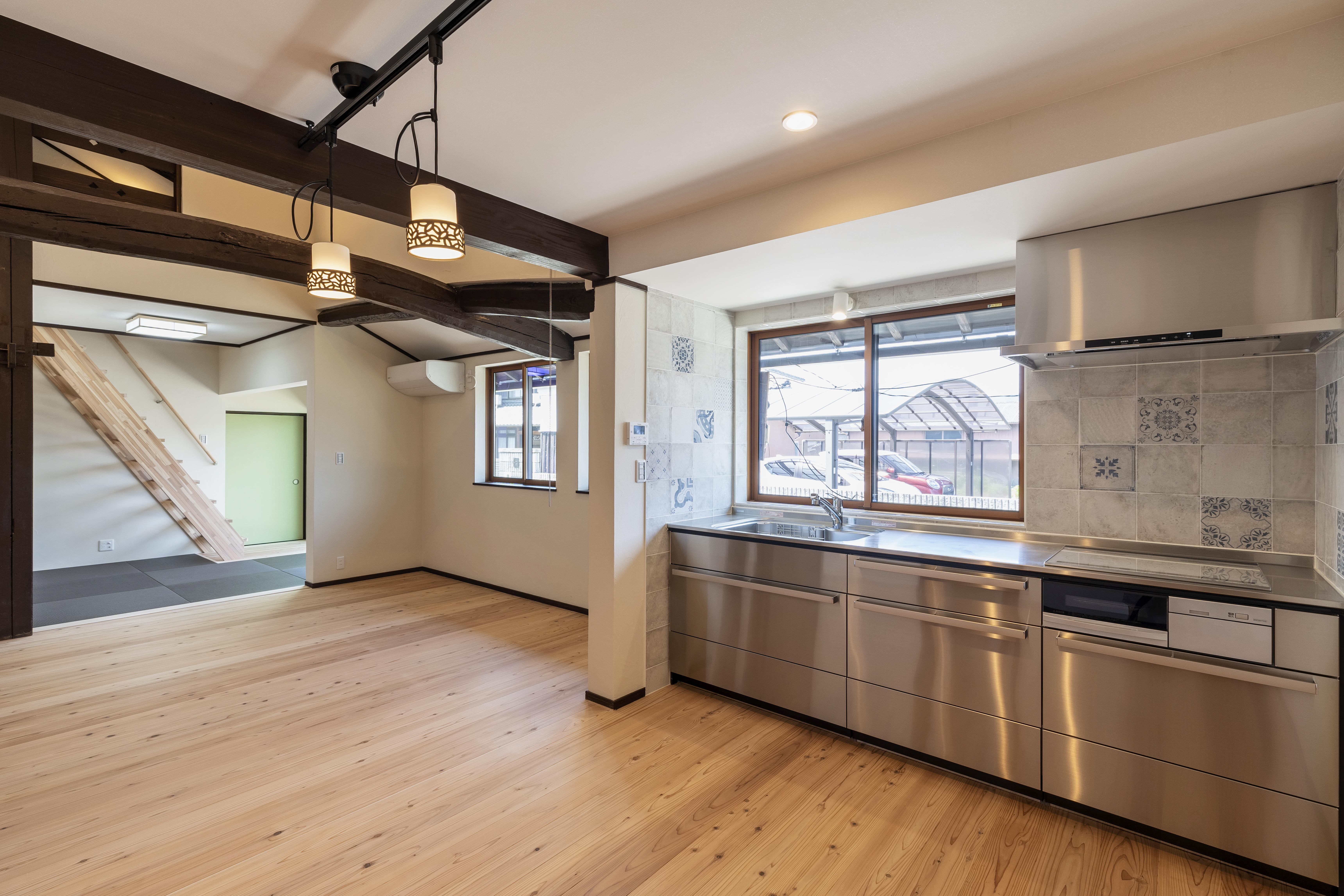 古くからの梁や柱を残し、その風合いを活かしたリノベーションです。