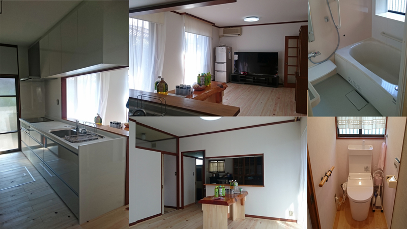 T様邸では水廻り(キッチン・お風呂・洗面台・トイレ)のリフォームと、天井・壁のクロスの貼り替え、そして床フローリングの張り替えを行いました。