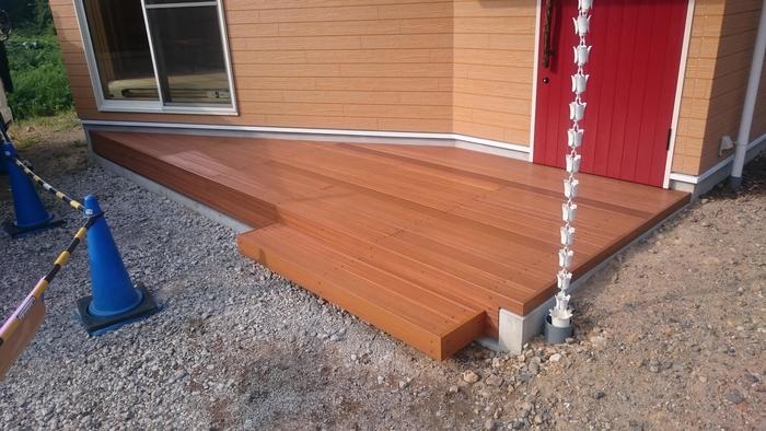 本日、完成見学会には間に合わなかった(汗)ウッドデッキ工事が無事完了致しました。