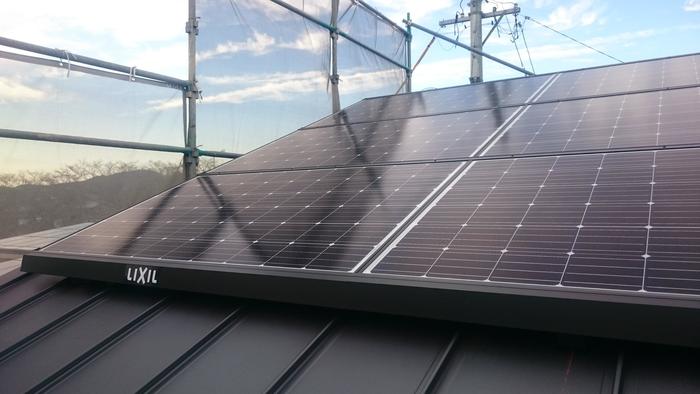 太陽光パネルも取り付けられ、パワコンとの接続なども完了。