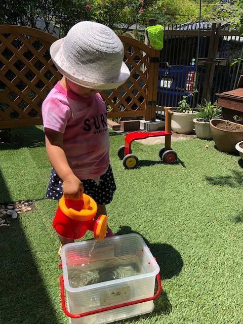 家の庭で雨水を溜めておき花壇に水やりをしてくれてた娘が、