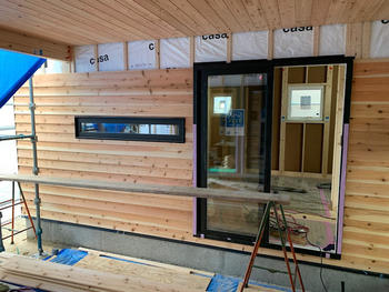 さわやかな外壁は、1枚ずつ重ねて貼っていくのでとても大変な作業です!