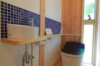 青いタイルがアクセントになった、明るい爽やかなトイレに仕上がりました(*^^*)