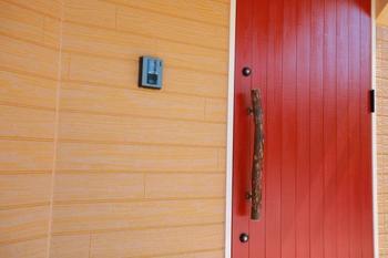 目を引く真っ赤な玄関ドアとびら!