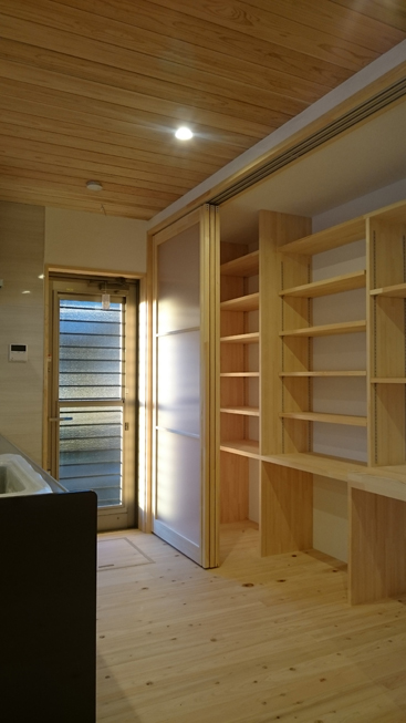 造作カップボードのスライド作業台