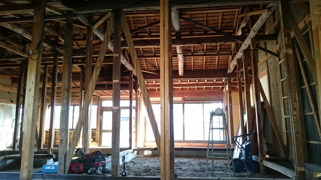 既存平屋を、すべてスケルトン状態にしてからの『耐震補強』&『リノベーション』工事です。
