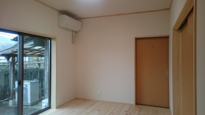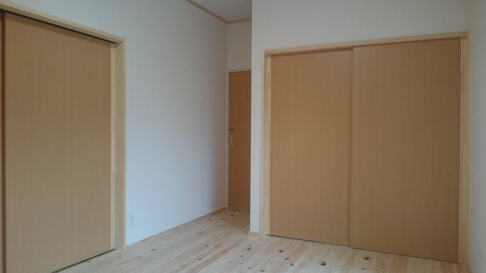 お施主様からのご要望で、寝室のすべての天井・壁・床に断熱材を入れました。掃き出しサッシ窓はペアガラス。