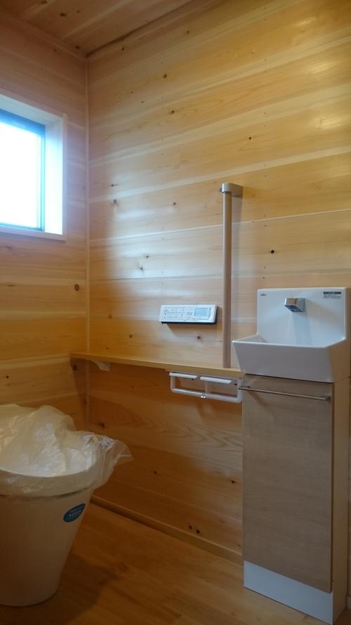 お母様の寝室に隣接しているトイレ。 寝室同様、トイレのすべての天井・壁・床は、断熱材で覆われております。中窓はペアガラス。