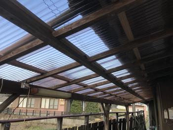 老朽化にてボロボロになってしまったトタン屋根 新しいものと交換し日差しも入るようになりました。