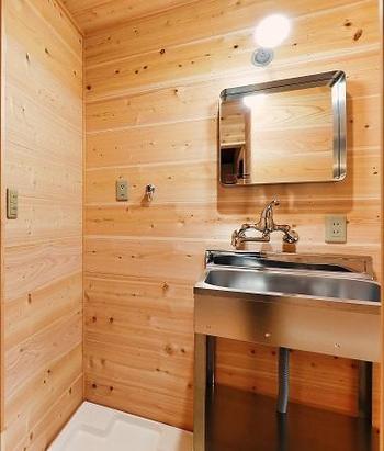 以前の洗面台はちょっぴり使い勝手が…というお悩みでした。 今回は洗面所の雰囲気にあった木の洗面台を造作しました♪