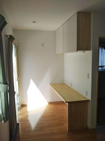 リビング増築のご依頼です!増築部分の南側に大きな窓を設け明るく風通しの良いお部屋に、作り付けのテーブルはお子様の勉強や作業スペースに、洗濯物がたくさん干せる洗濯ルームもあります。大容量の収納の上には美しい欄間を飾りました!ご主人様の実家にあったものだそうです!思い出とともに快適なリビングに生まれ変わりました♪