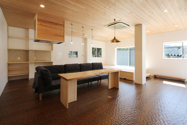 リビングの床は、優しく滑らかな曲線がお部屋にあたたかみを与えてくれます。小上がりには、温かな日差しが差し込み、ゆったりとした時間がすごせそうですね。