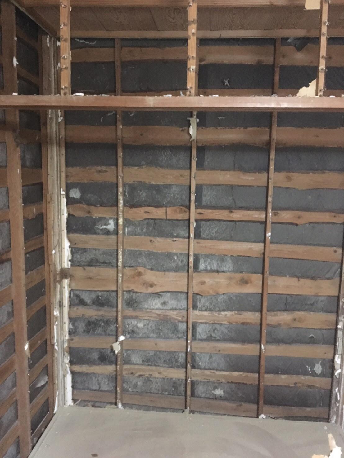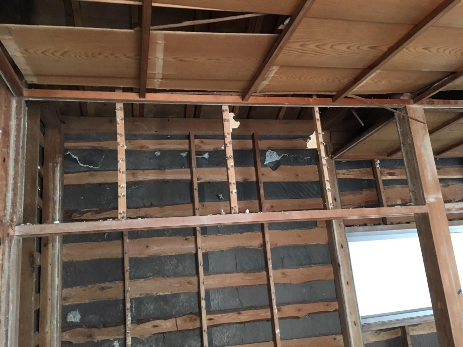 壁を剥がしてみるバラ板の隙間が広すぎる事が分かります。