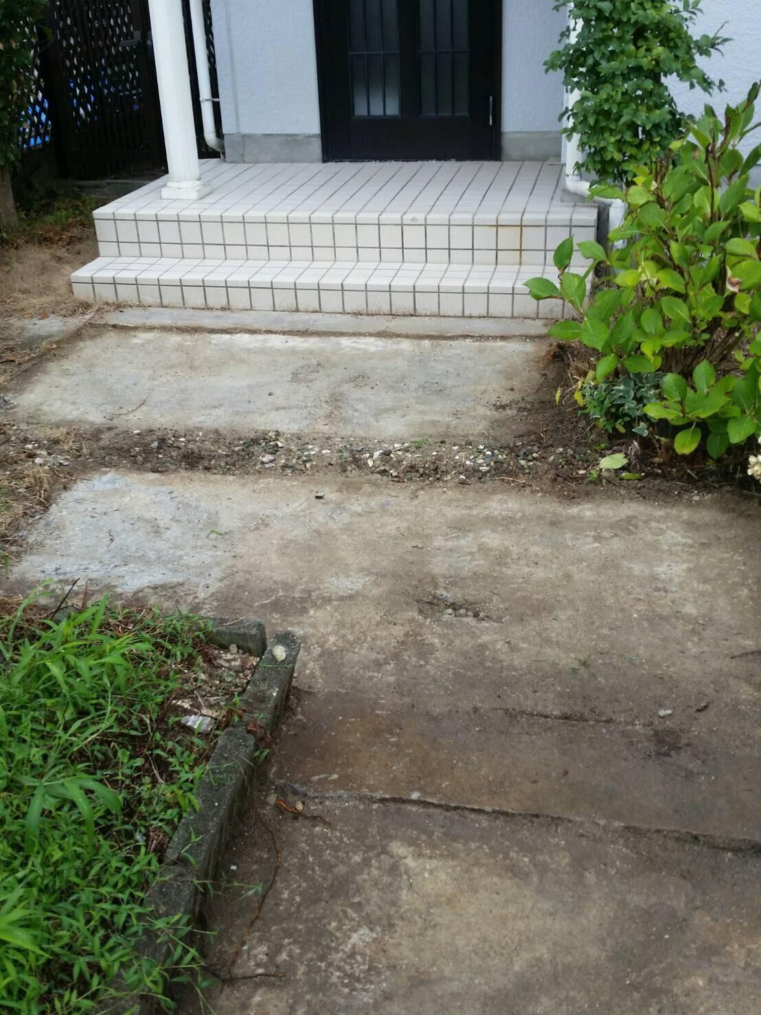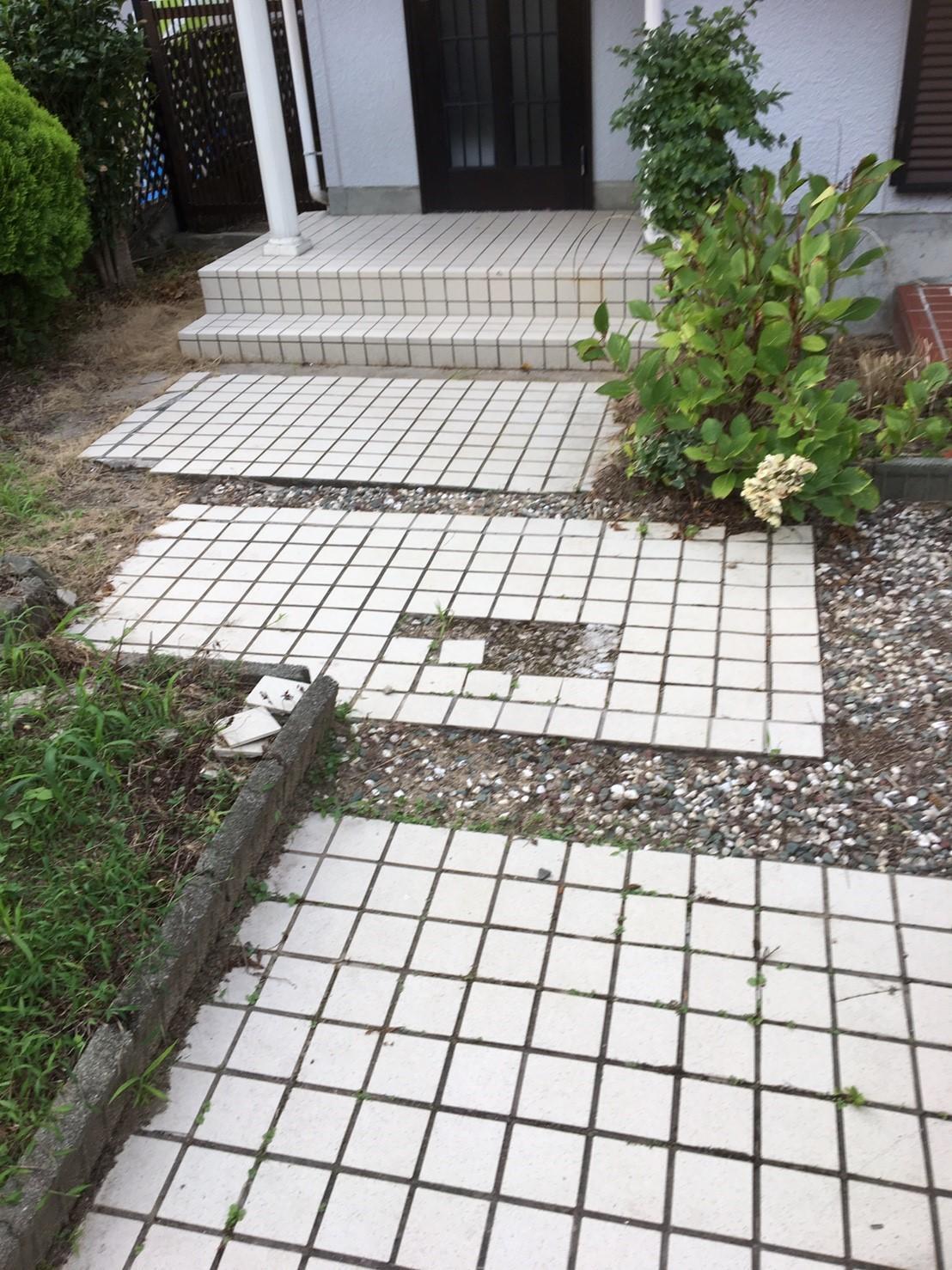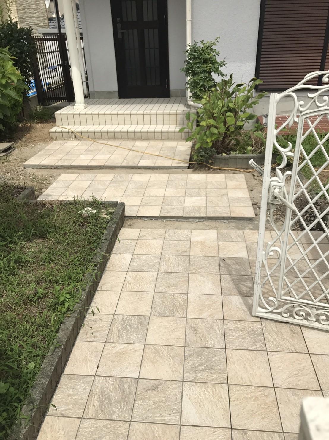 玄関ポーチのタイルが下地ごと割れていて危ない状態だったので、タイルを張替えしました。輸入タイルで工事をさせていただきました。落ち着きのある色合いに仕上がりました。