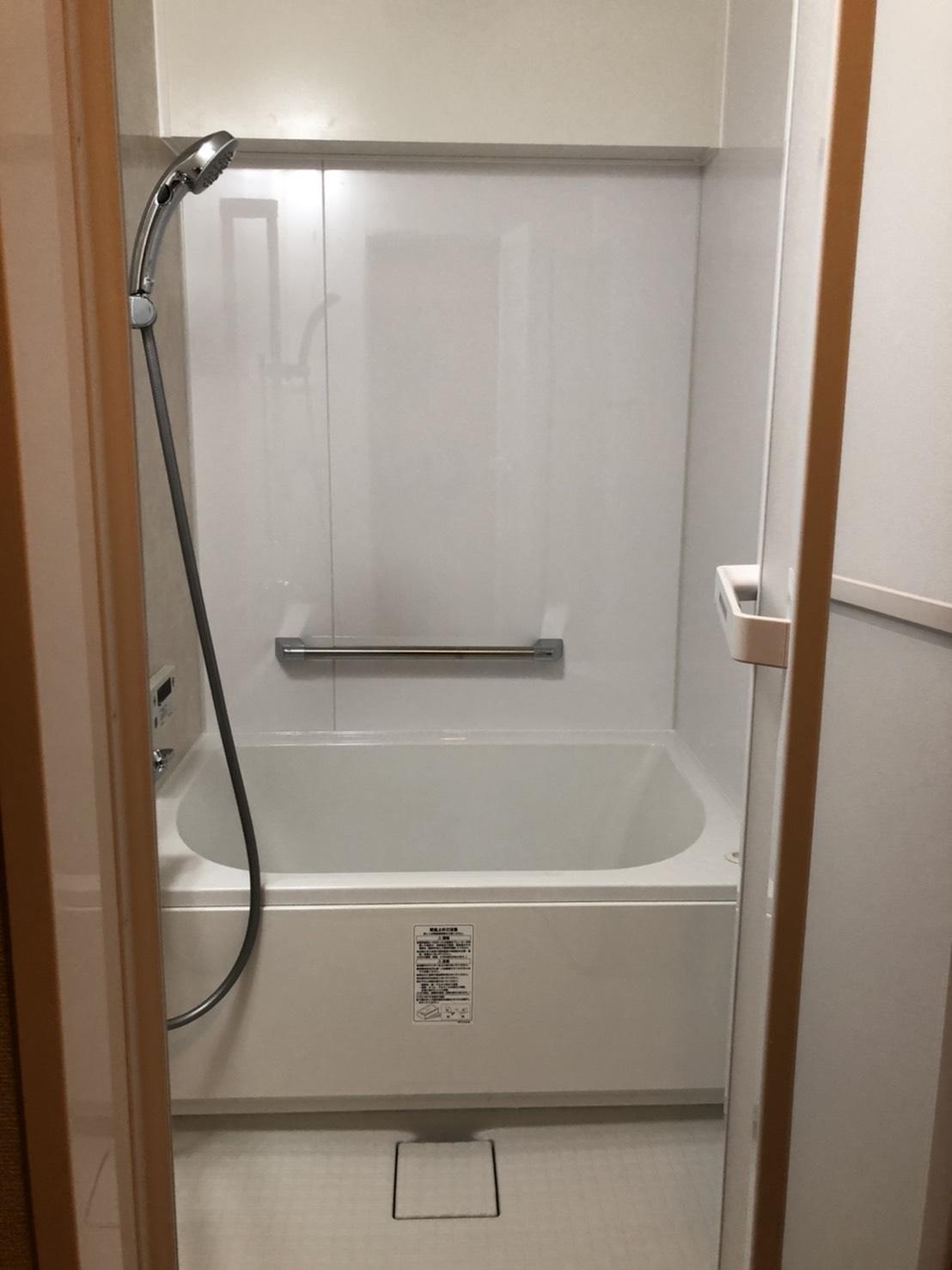 浴室工事を行いました。在来浴槽からユニットバスにしたいとご来店いただき、打ち合わせを行いながらシャワー・手すりの色味や壁紙のイメージなどご希望に添えるようなご提案を致しました。元々はタイル張りということもあり冷たさを感じる浴室でしたが、床・壁を張り替え清潔感がありつつも温かみのある浴室へと変わりました。