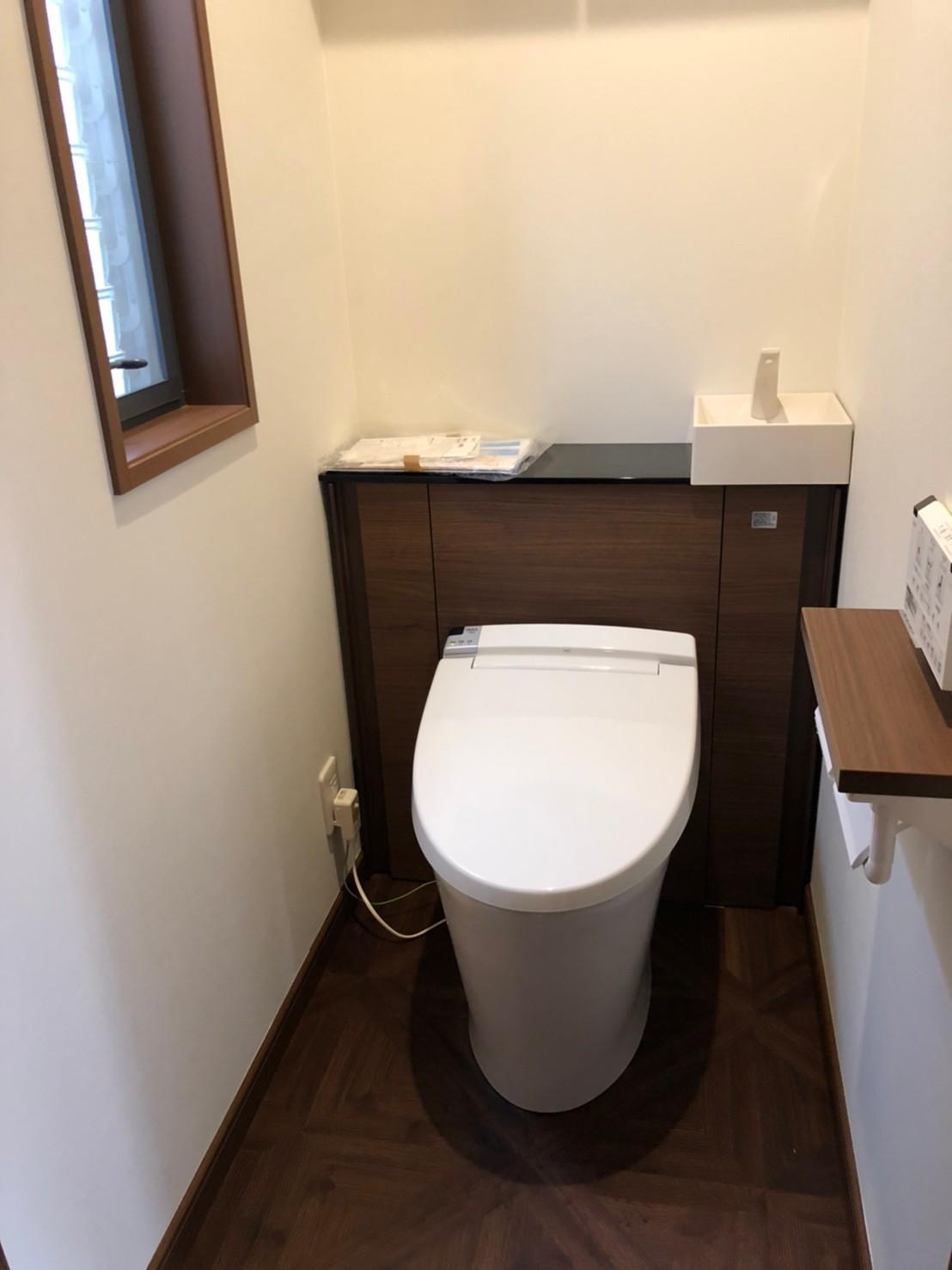 施工中はモデルハウスに仮住まいしていただきました。 工事の進捗は日々メールで写真を添付しながらご報告いたしました。 壁紙やタイルもサンプルを取り寄せて決定していただきました。 コロナウィルスの影響で設備機器の納品遅延、天候による外装工事の延期などがありましたが 予定通りの完工に間に合わせる事が出来、お施主様にもご満足いただける仕上がりとなりました。