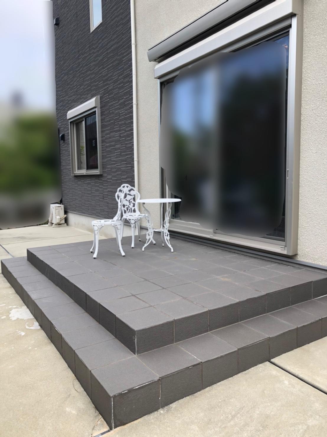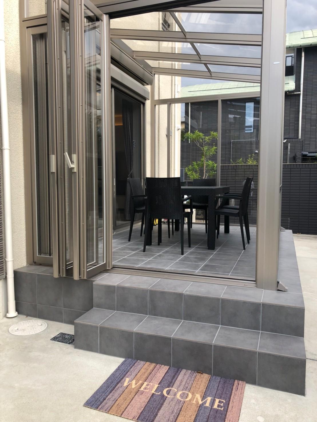 家の外観の雰囲気に合わせたタイルのカラーや、新たに設置された家具でカッコイイ印象のガーデンルームに仕上がりました。