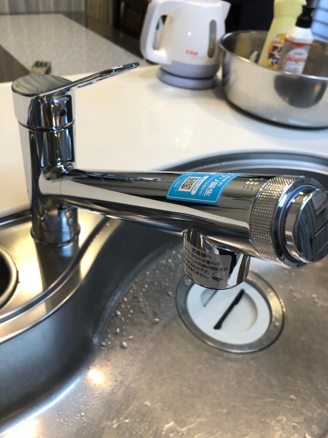 キッチンオールインワン水栓の取替工事を行いました。 なかなか水が止まらないことや、斜めに水が出ることがお困りとのことで、従来の水栓よりスタイリッシュな見た目に、さらにカートリッジもコンパクトになりました。 浄水・原水・シャワーの切り替え操作も簡単で施工時間は約1時間です。 内部を見ることがないのでとお施主様も工事中立ち合いをしてくださり、