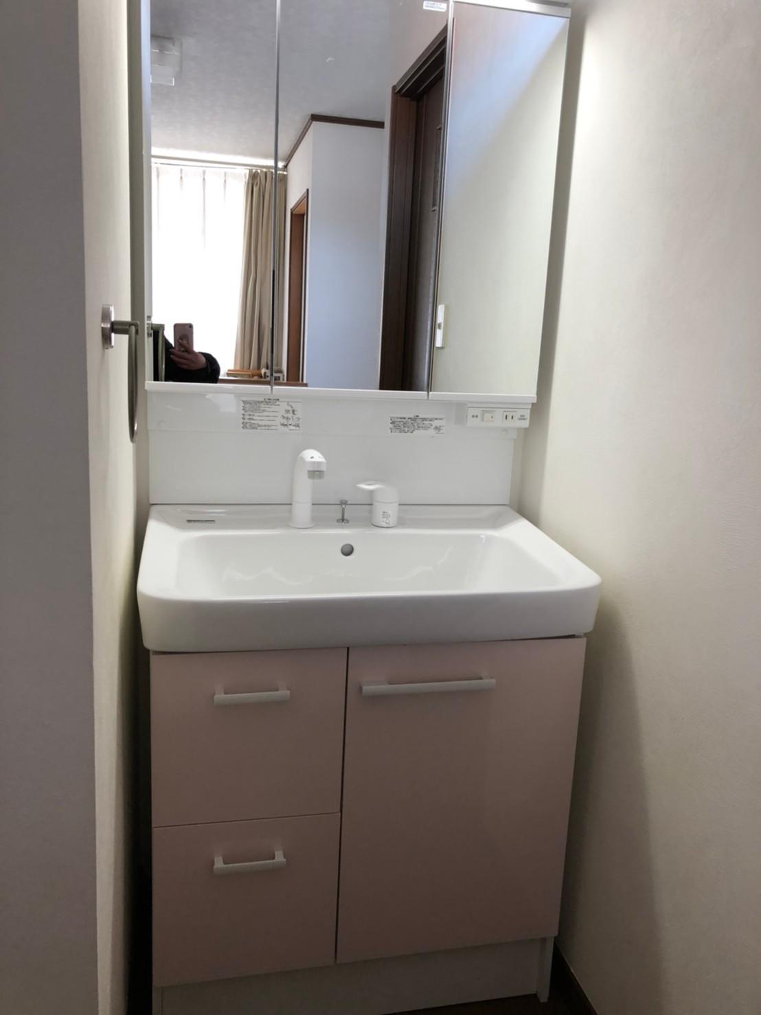 窓枠に合わせて洗面をつけたいとの希望でしたのでアジャストミラーでの