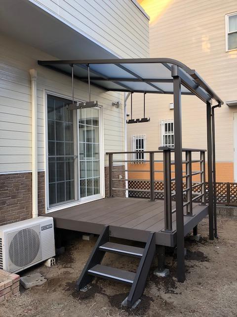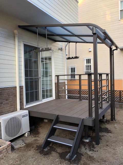 ウッドデッキは老朽化に伴い撤去済でした。洗濯物が干せるようにテラス付きの樹ら楽ステージを設置しました。