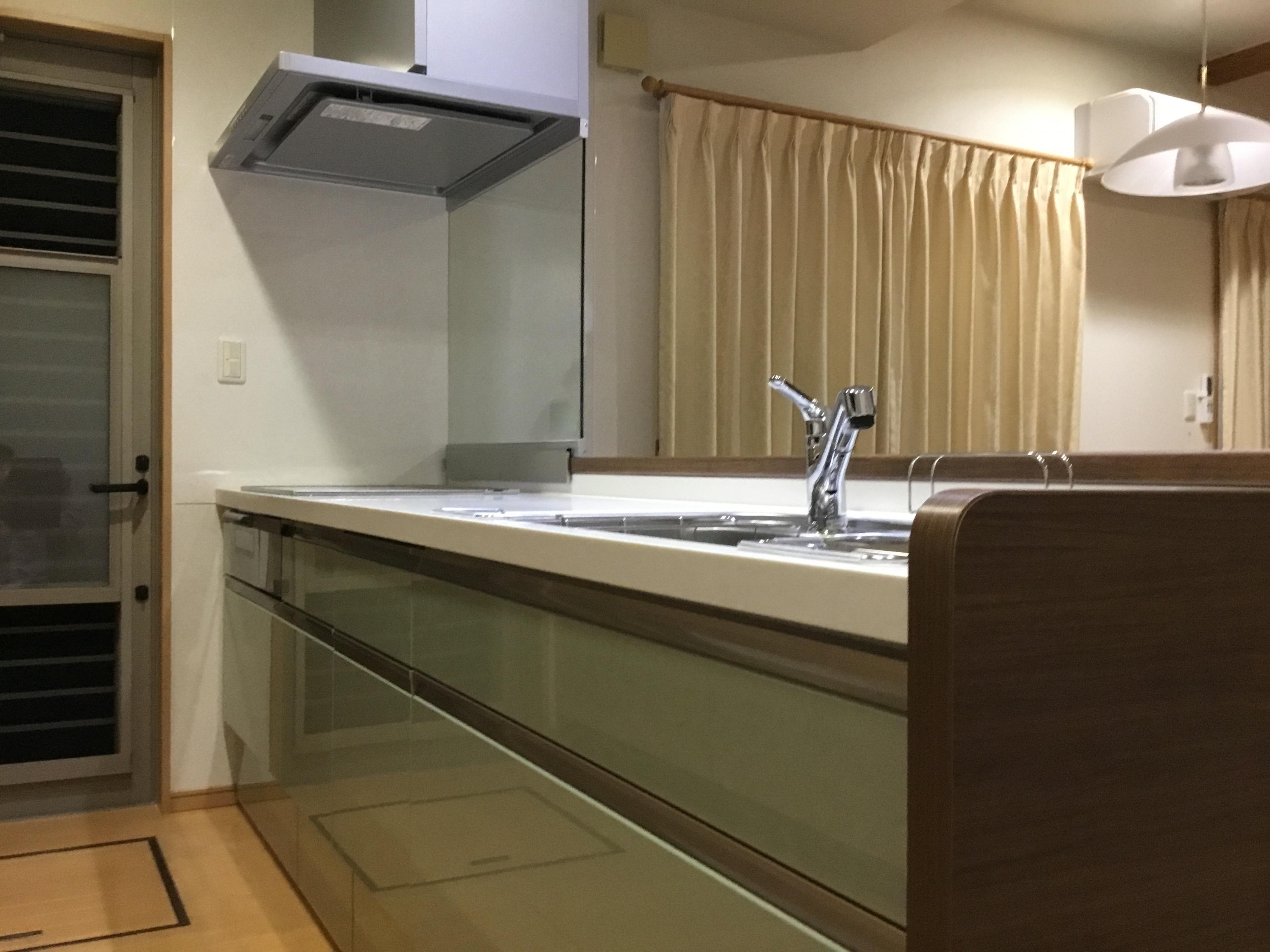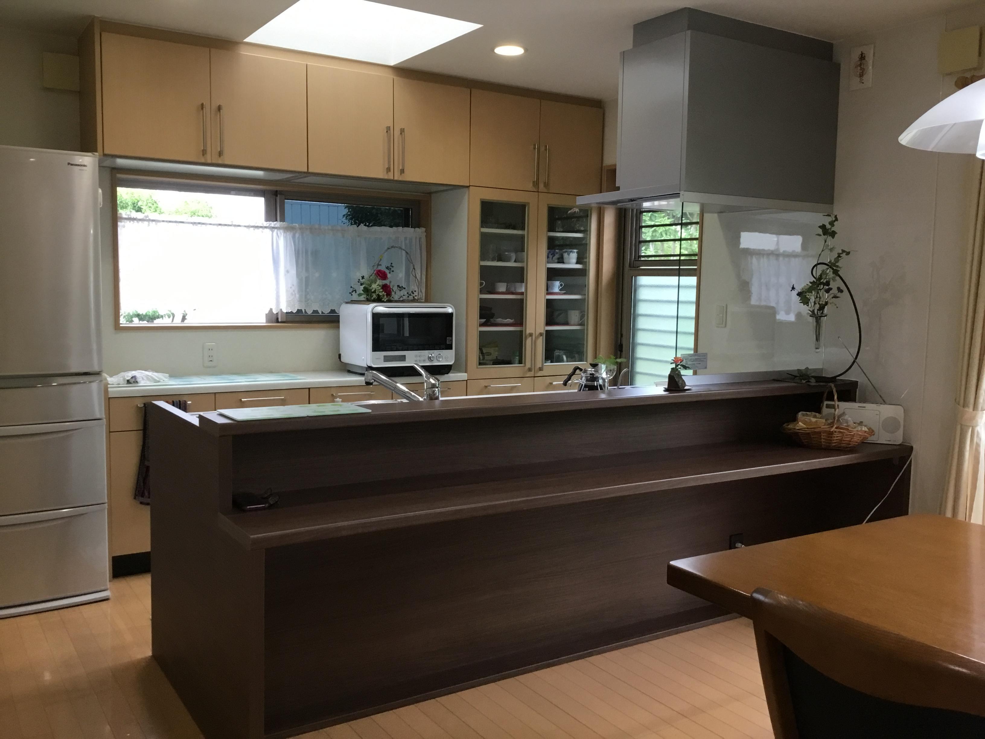 キッチンをもっと開放的にしたいとのご希望がありレンジフード前の壁を撤去してキッチン入れ替え