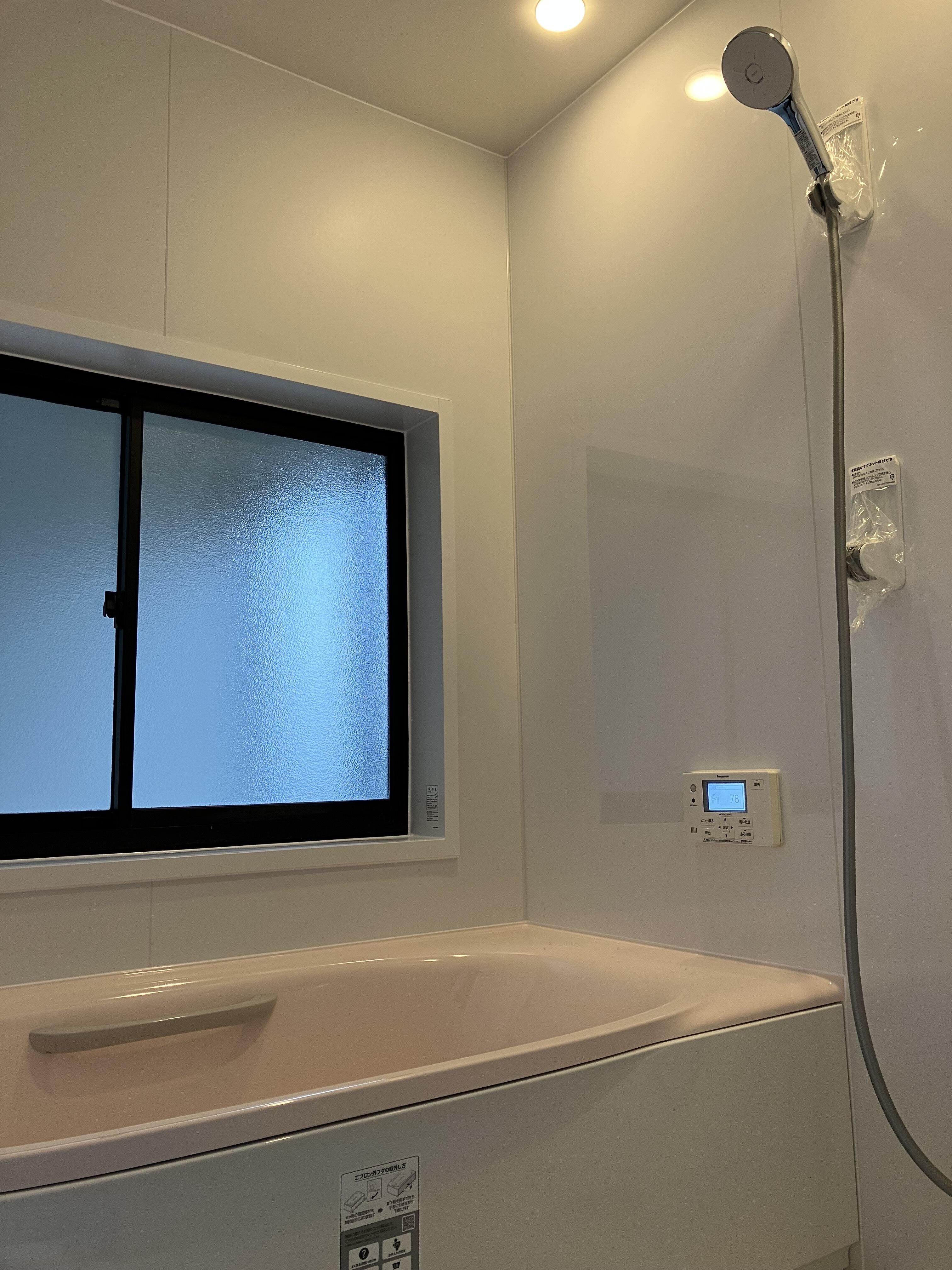 まだ不具合は無いけれど今のうちに!と浴室リフォームをご依頼いただきました。 鏡やカウンターは無し。 収納とシャワーフックはマグネットタイプにして、スッキリおそうじのしやすい浴室に。 外部に面した壁にはしっかり断熱材を入れ、快適なお風呂になりました。