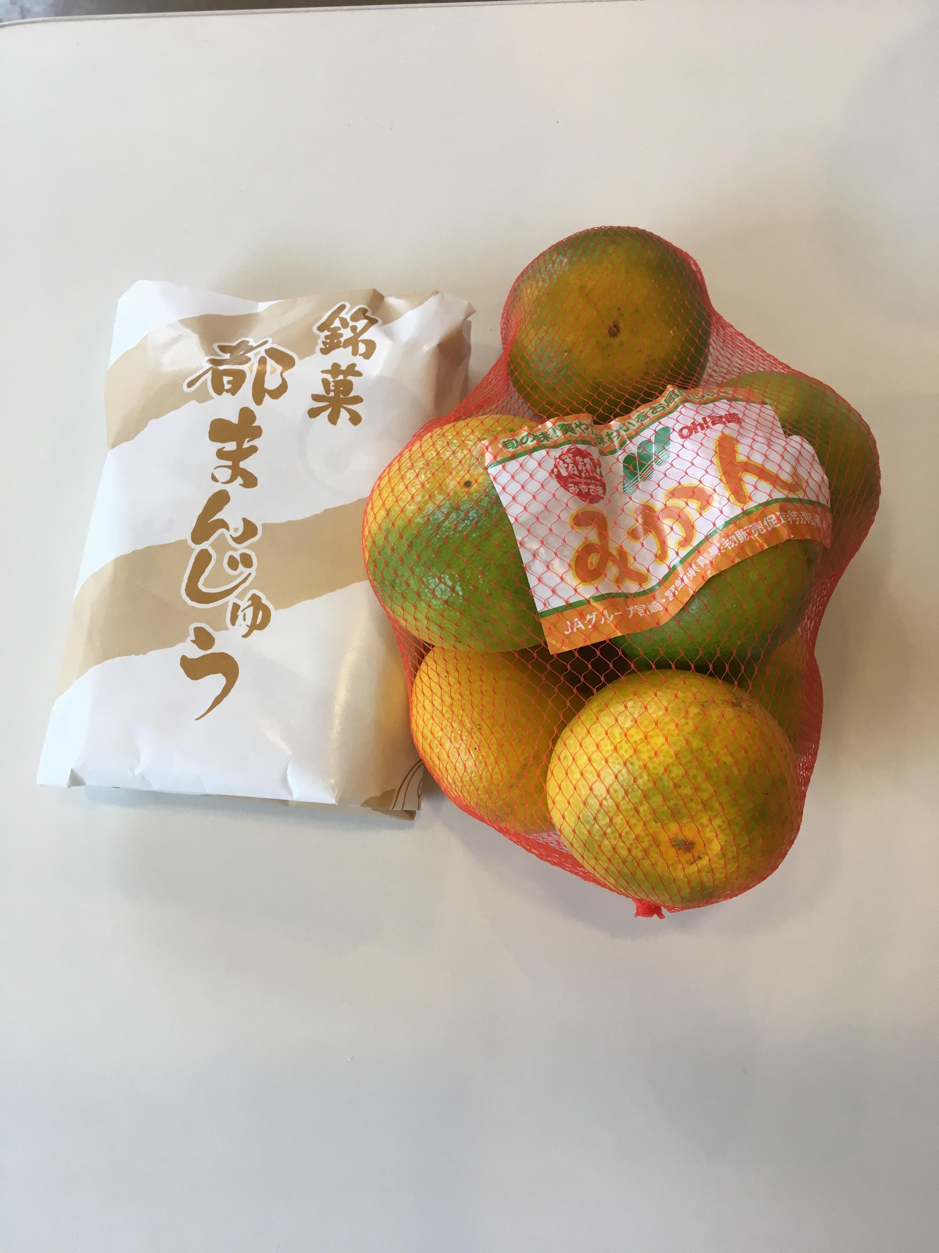 おみかんとお饅頭をいただきました。
