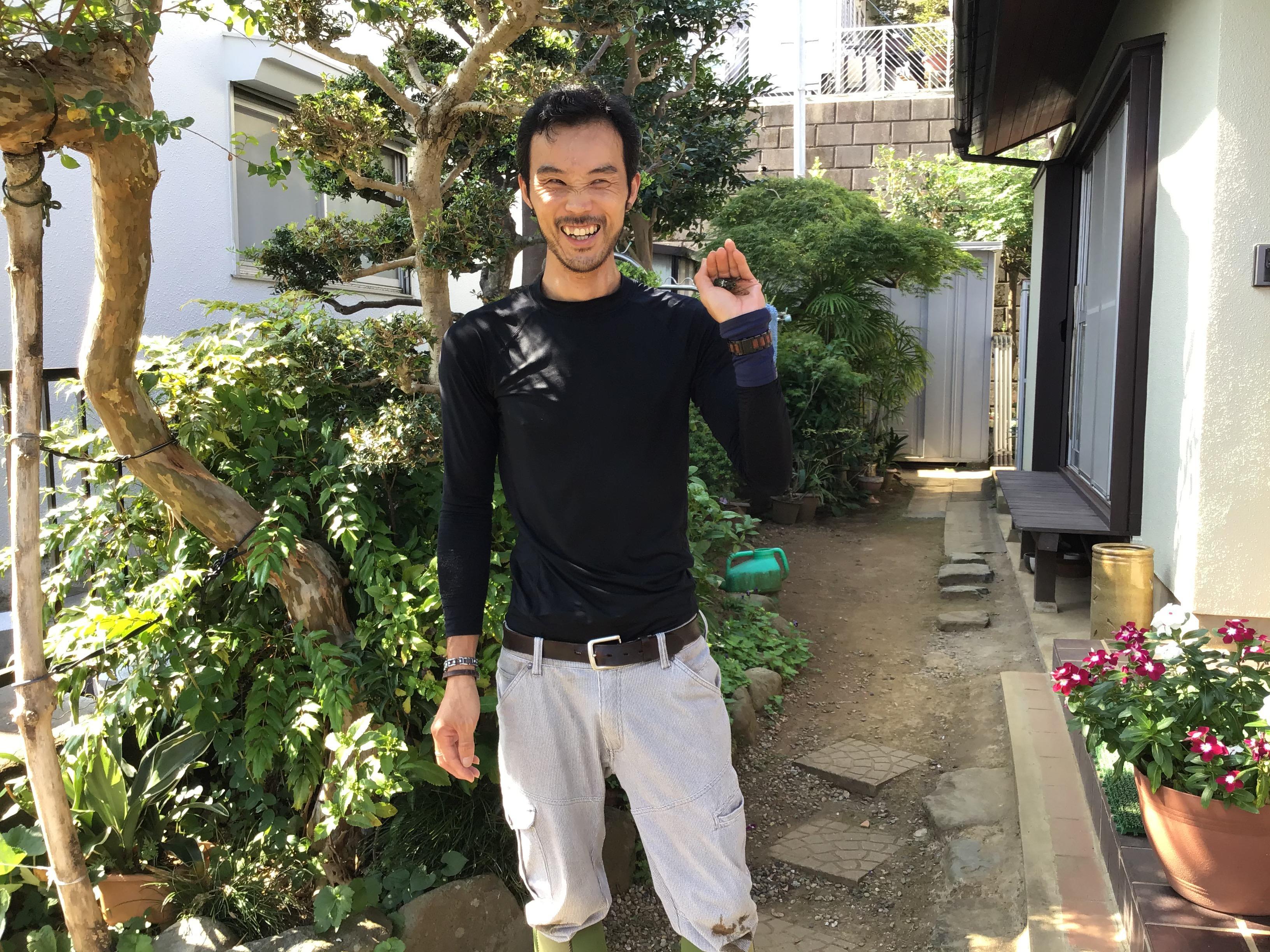 接着剤が乾くまでJ様と設備屋さんと世間話をしてたら近くにセミがとまったので記念写真を撮りました。