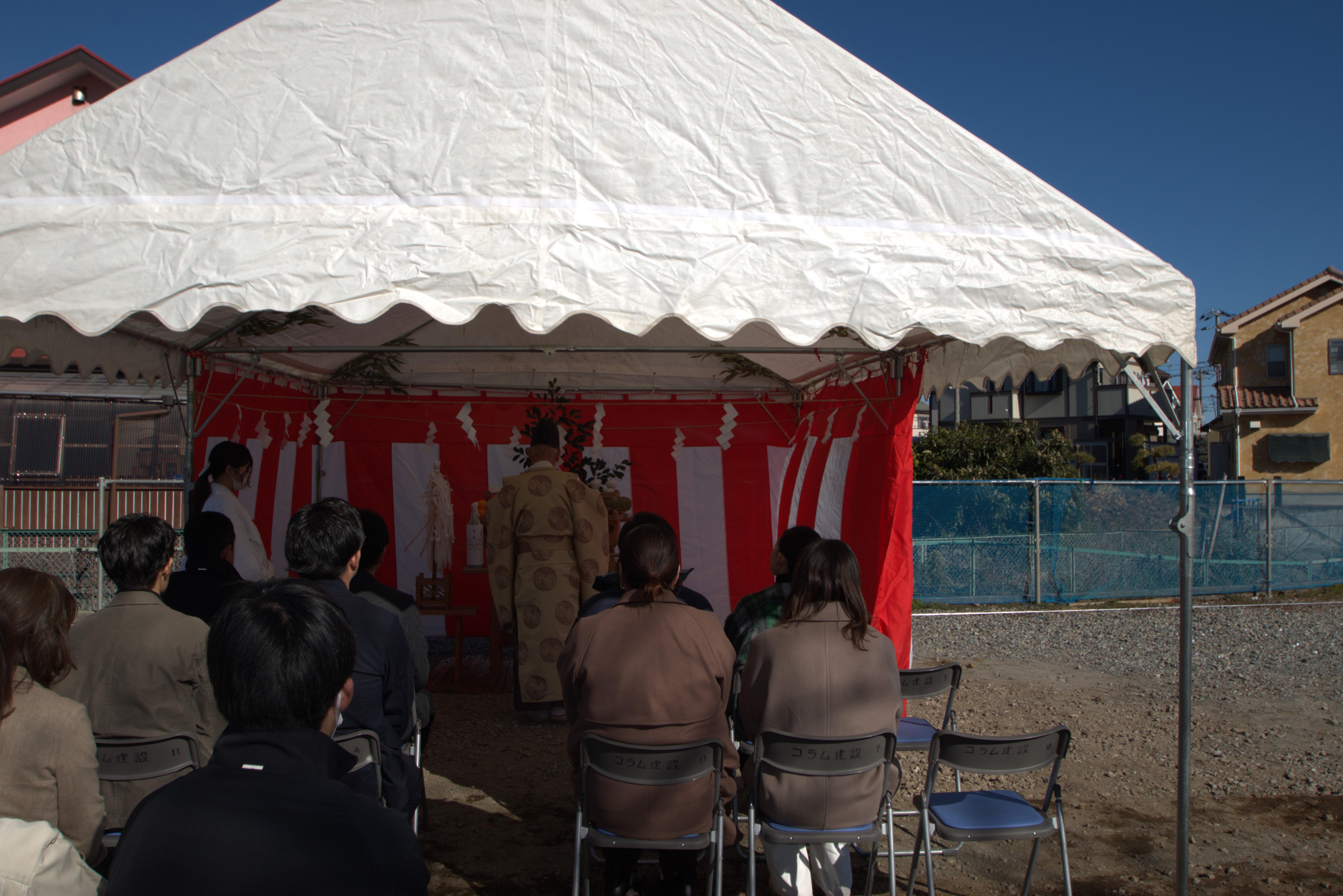 こちらの写真は1月11日に行われた地鎮祭の時の写真です。