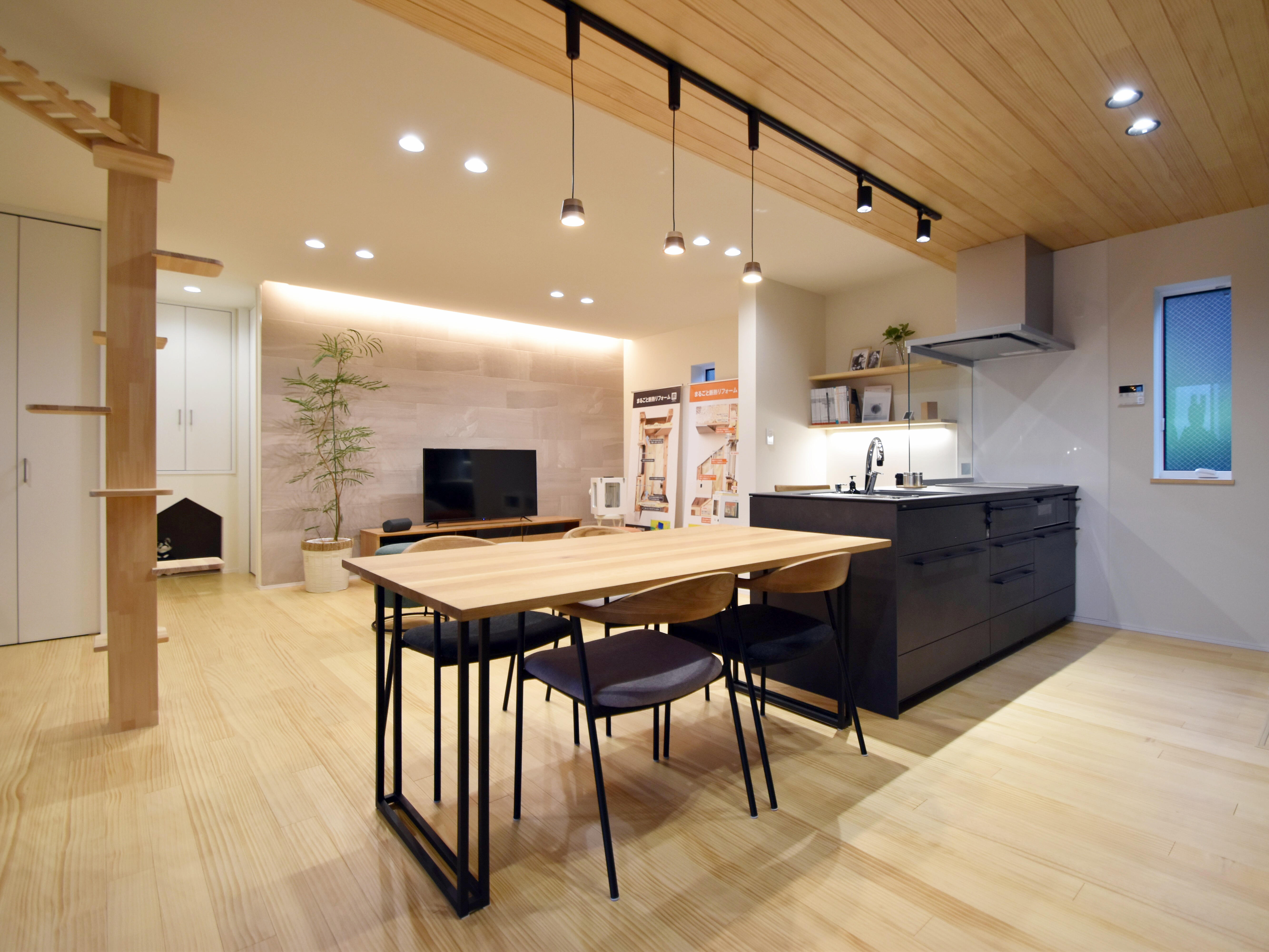 展示場のキッチンは、オープンな対面型のLDKになっているので、広々とした一体感のある空間が特徴です。