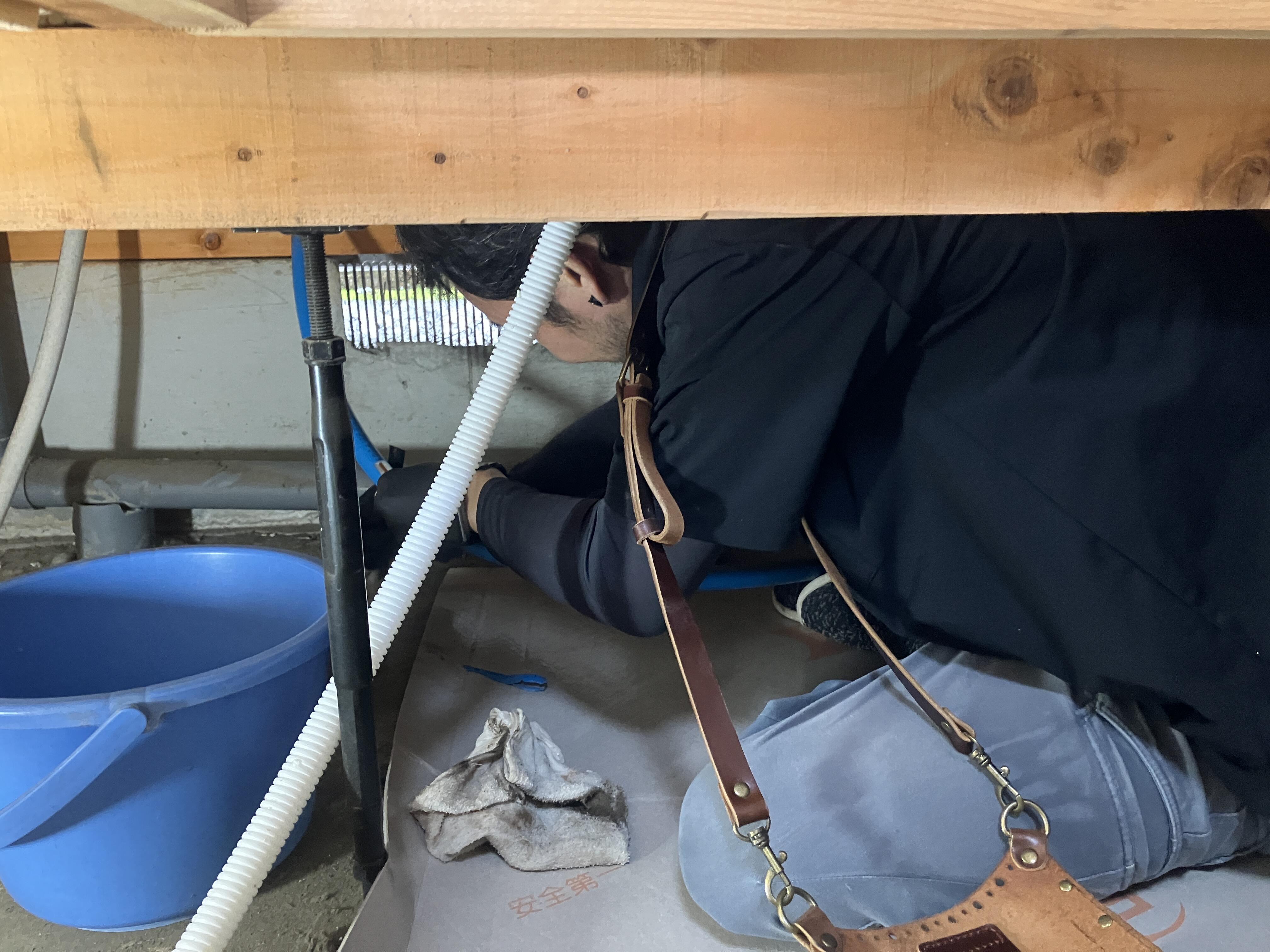 ■床下での配管移設作業 〜職人さんの丁寧な手しごと〜