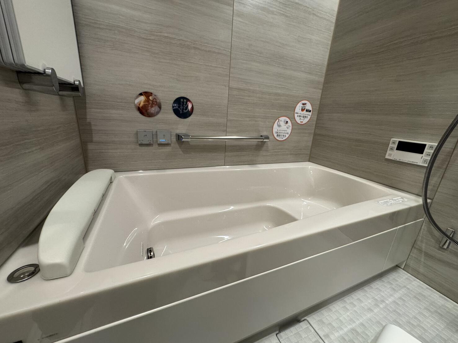 お風呂はLIXILの肩湯に加え、ジェットバスも完備されています。一日の疲れをしっかり癒してくれる、まさにご褒美のようなバスタイムが過ごせそうです。壁はマグネット式になっていて、棚や鏡を取り外して掃除ができるため、お手入れのしやすさも魅力的でした。
