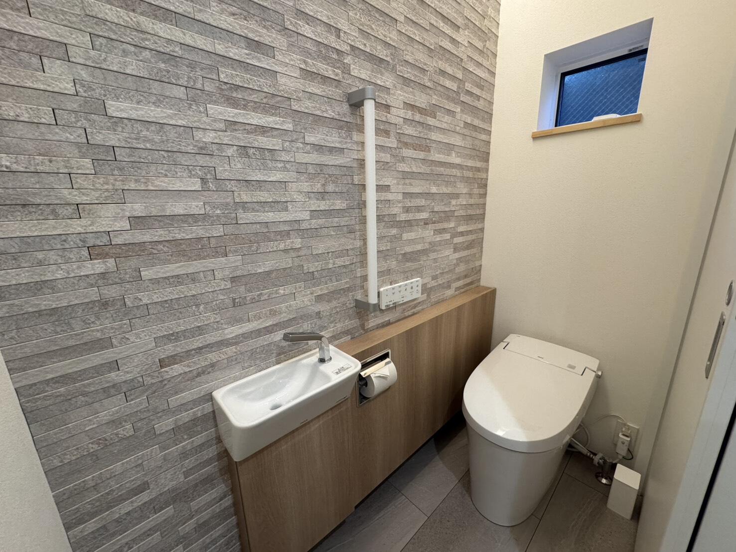 まず印象に残ったのがトイレです。壁にはエコカラットが使われていて、高級感があるだけでなく、においを吸収してくれるのが嬉しいポイント。標準サイズのトイレでも、落ち着いた雰囲気で、来客時にも安心できそうだと感じました。