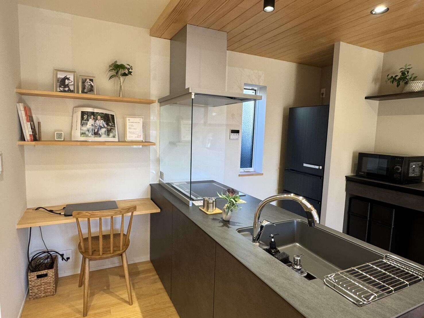 リビングの一角にはワークスペースがあり、在宅ワークやちょっとした調べもの、家計管理などにも使いやすそうでした。家族の気配を感じながらも集中できる、ちょうど良い空間だと思います。