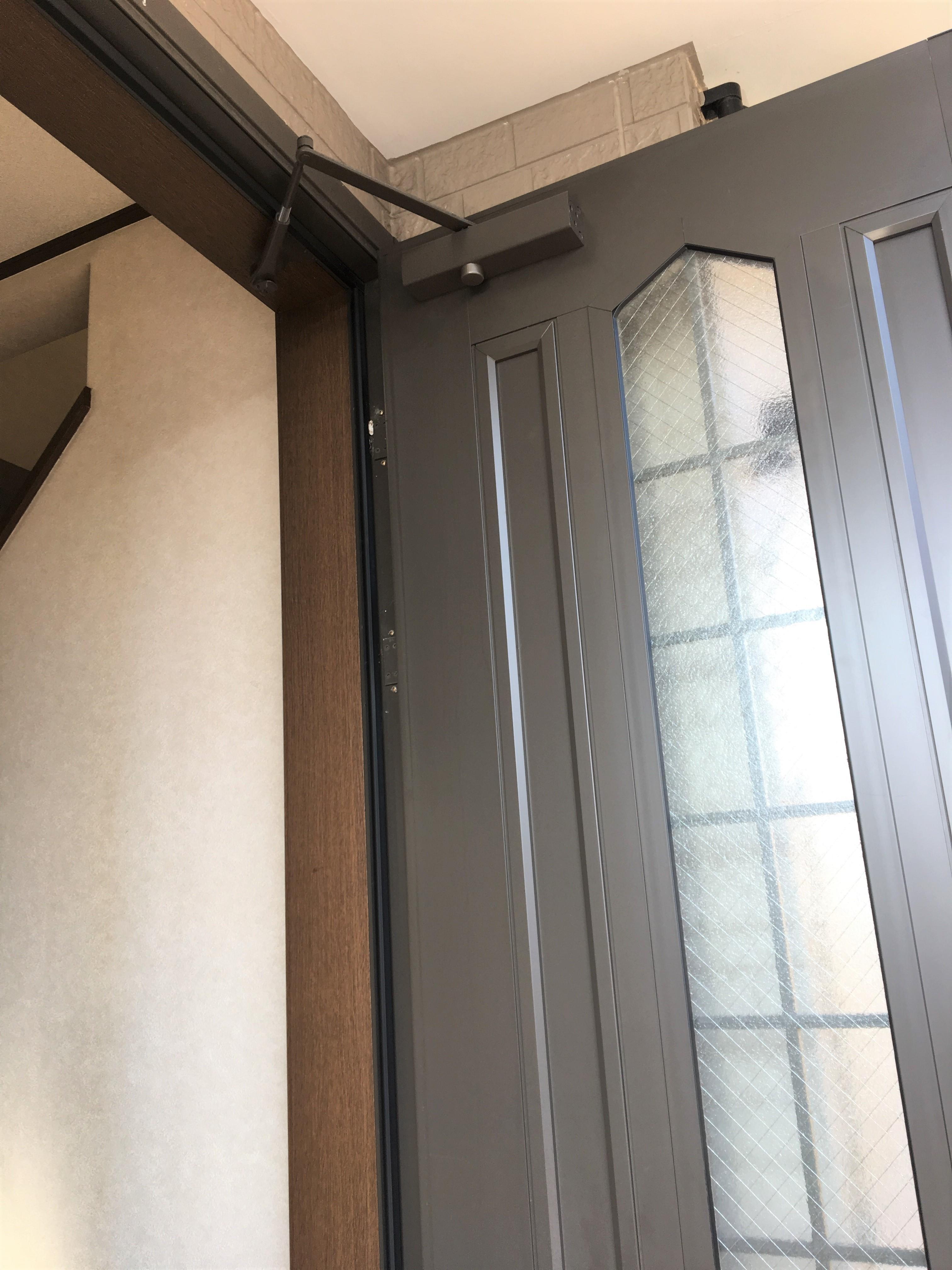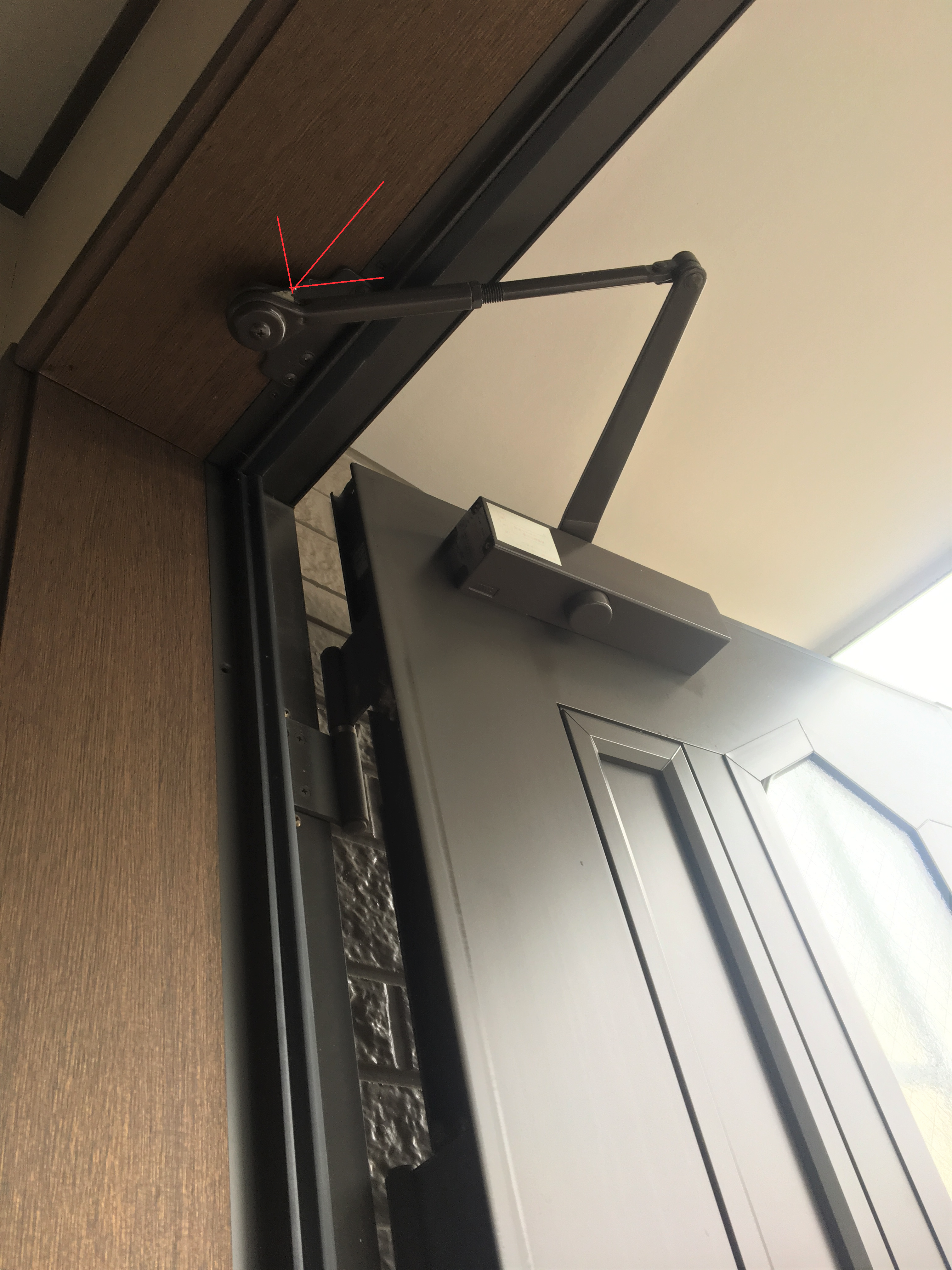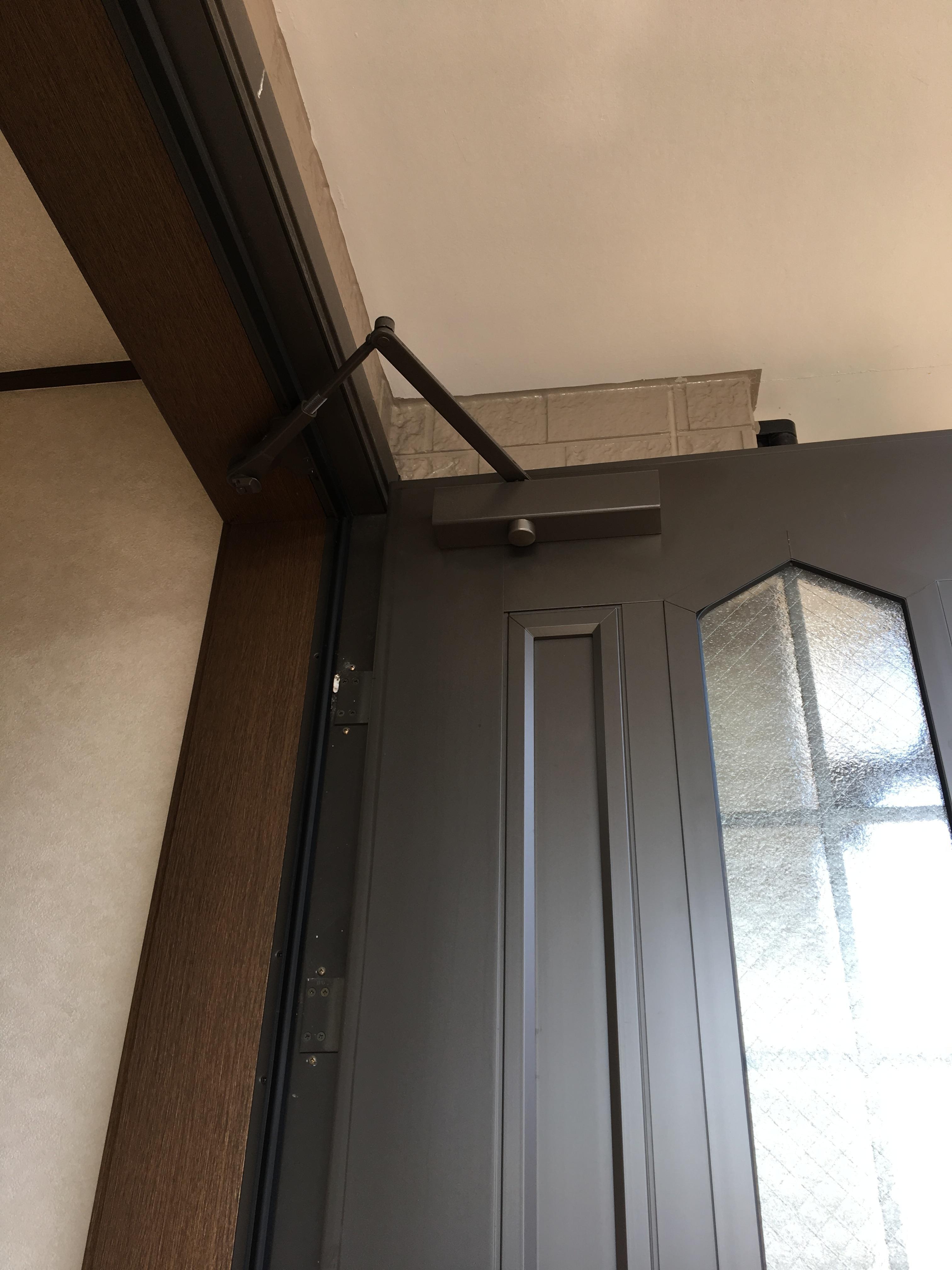 ドアを開閉する際にカチッと音がするようになり、調整しても扉がバタンと閉まるようになってしまったのでドアクローザーを交換する事になりました。