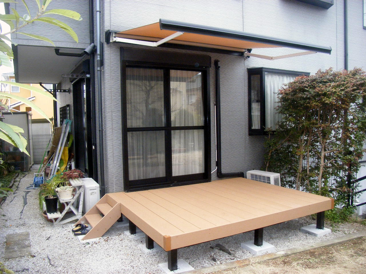 老朽化したウッドデッキをお手入れが楽な人工木材のウッドデッキにリフォームしました。