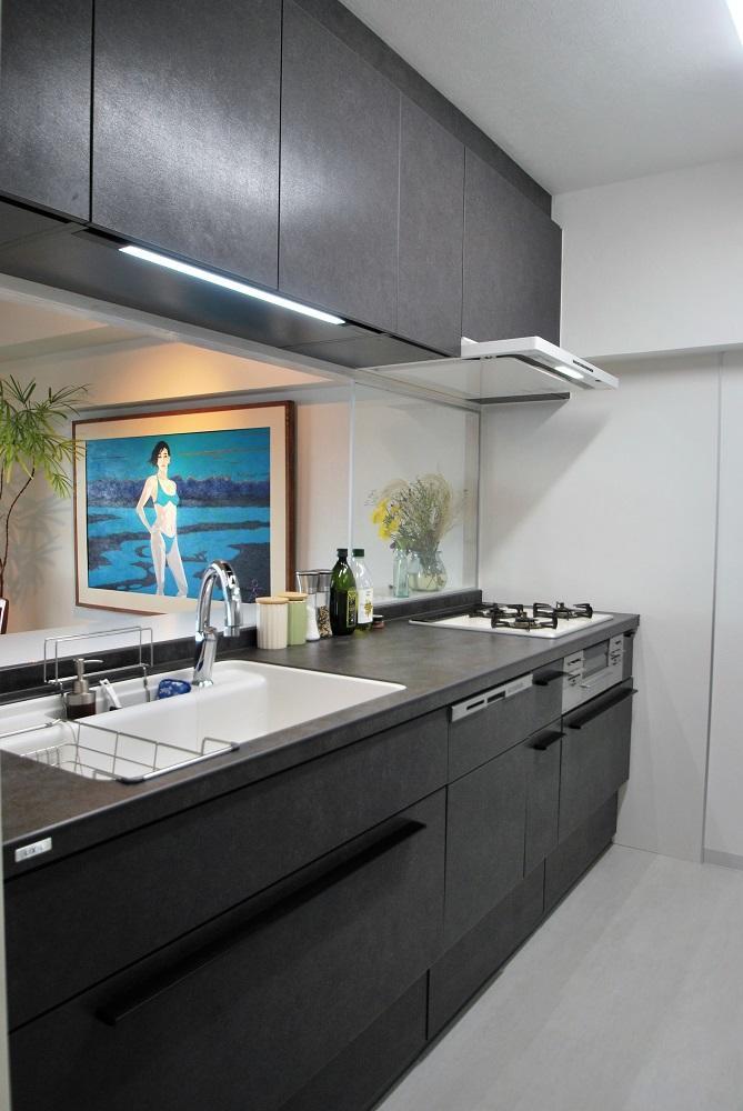 今あるキッチンの調理器具が新しいキッチンに収納できるのか、また身長に合うカウンターの高さは何cmかなどショールームで細かく打合せさせていただきました。グレー系のアンティーク調の床材とスタイリッシュなリシェルのキッチンがマッチした素敵なLDKに仕上がりました♪