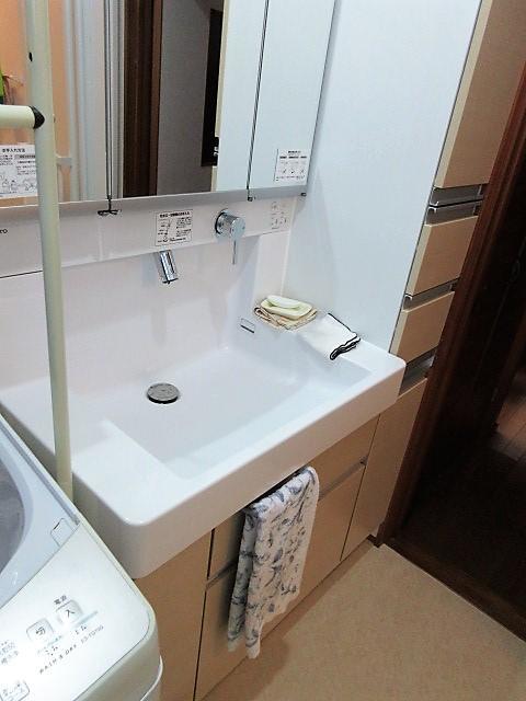 浴室と洗面所をリフォームしました。小物が多い洗面所ですが、洗面化粧台横の収納や鏡の裏の収納で、収納場所に困りません♪