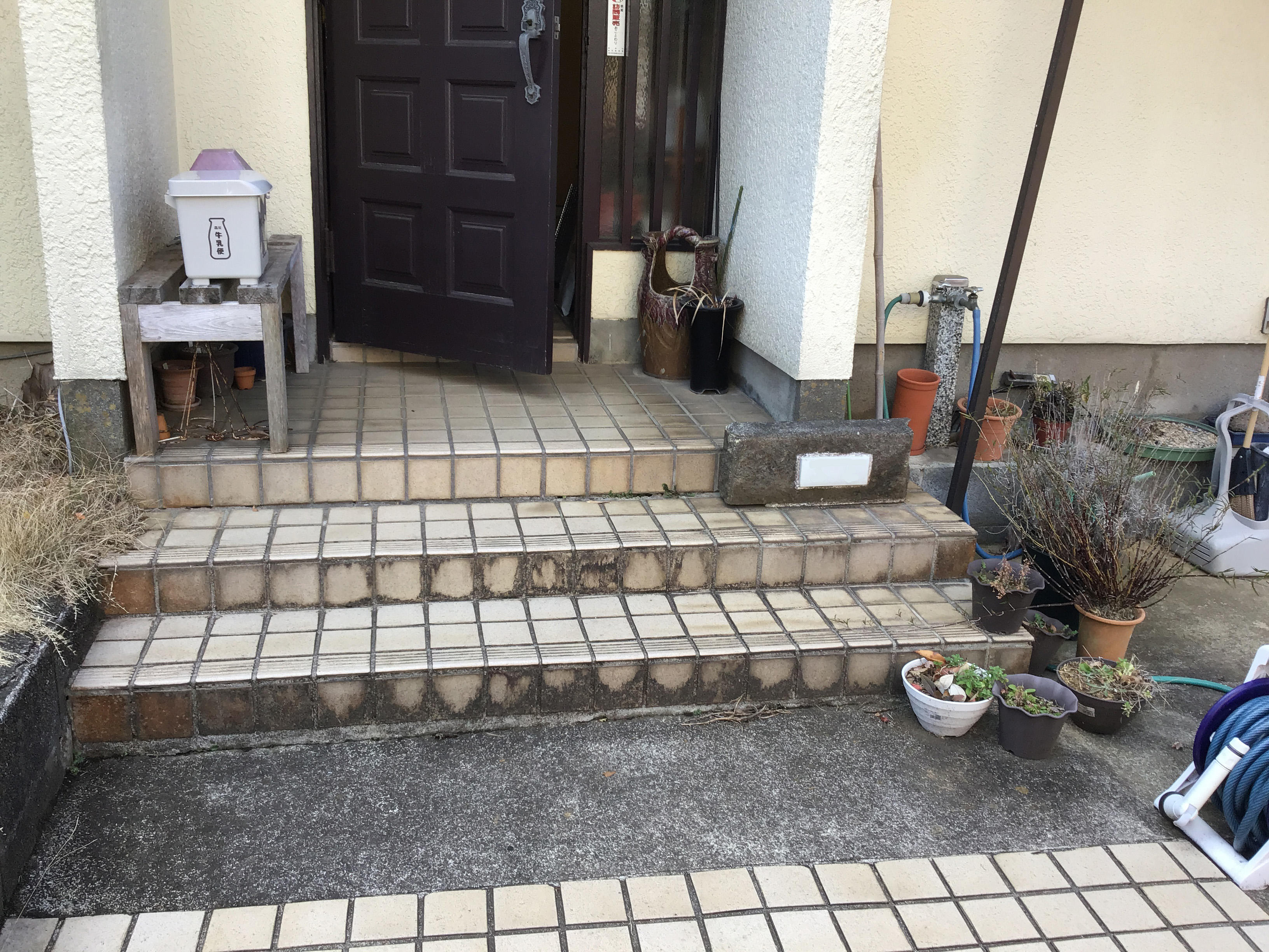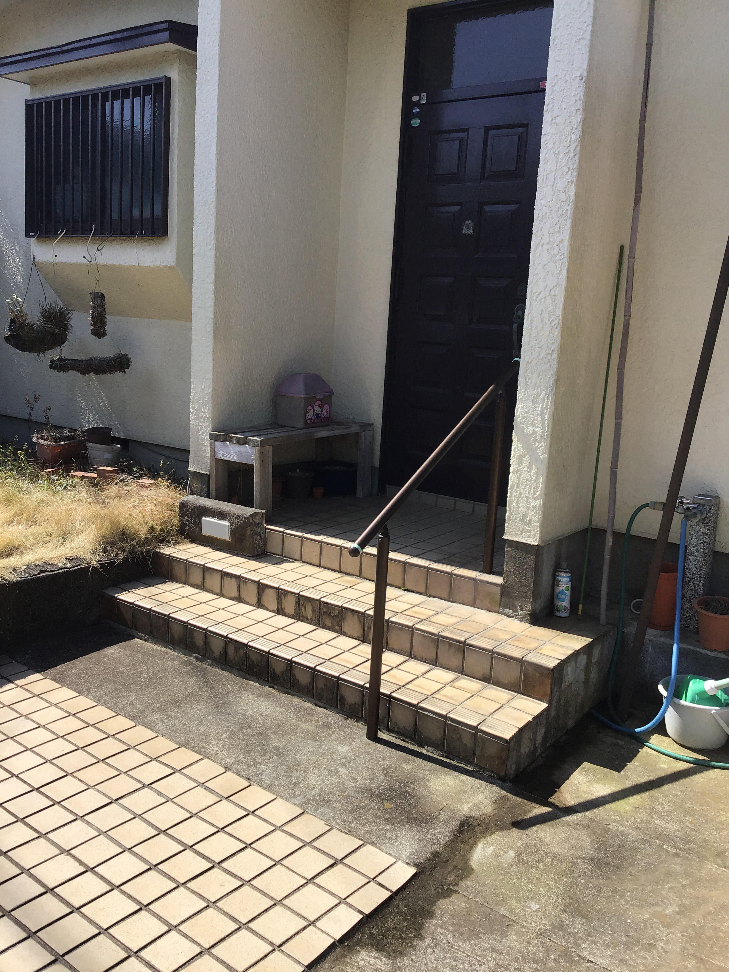 介護保険を利用して玄関ポーチに手すりを取付けました。弊社では介護保険を利用したリフォーム工事も行っています。