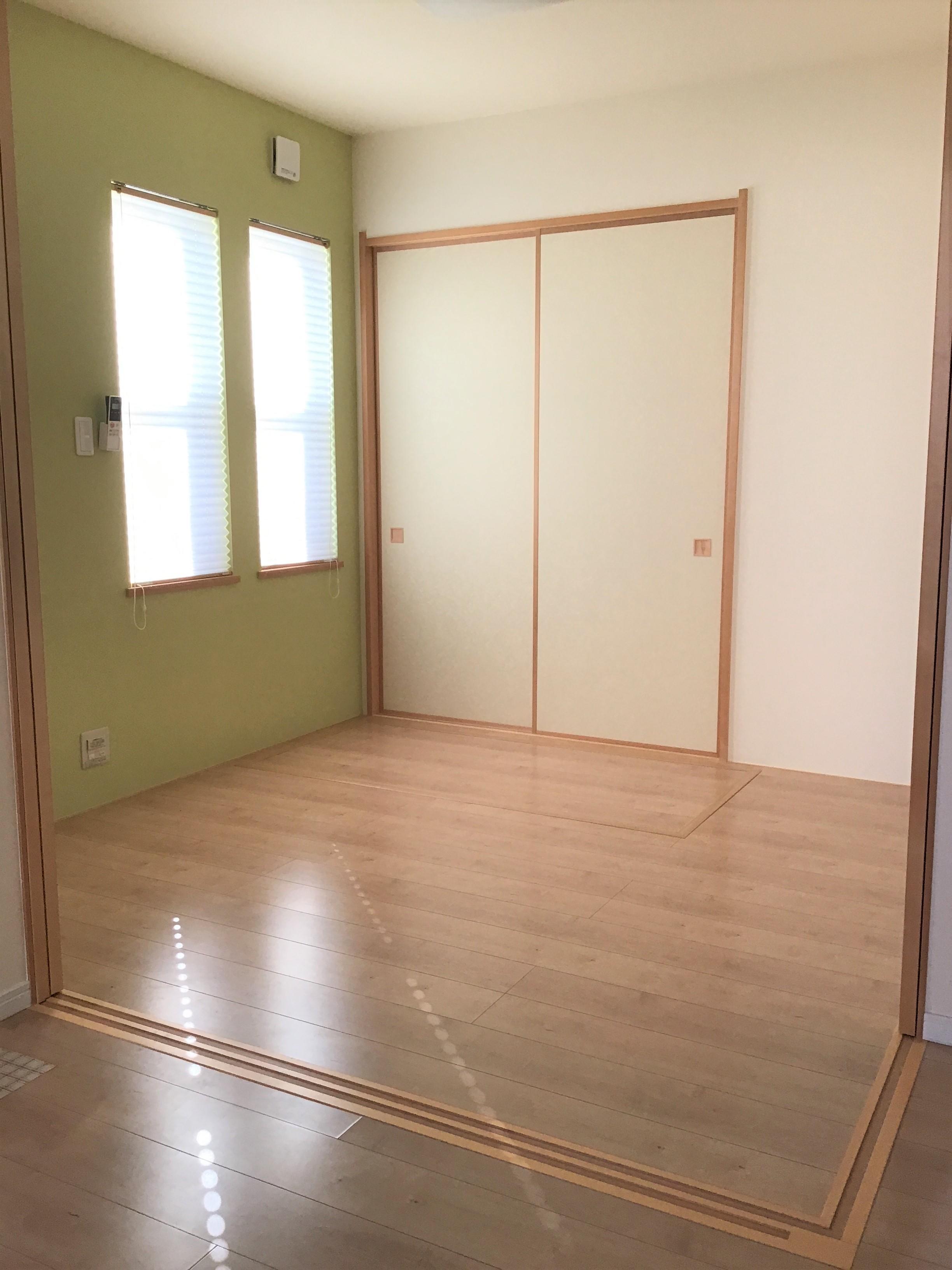 当初は和室を洋室にしたいとのご要望で、クロスや襖の張替えも検討されていましたが、まだ築2~3年で襖もクロスもきれいなので、お客様にはもったいないですよ。と説明させて頂きました。金額も高くなってしまうので、今回はフローリングの張替え工事だけ行いました。コラムホームは商売っ気のない会社なんです。(笑)