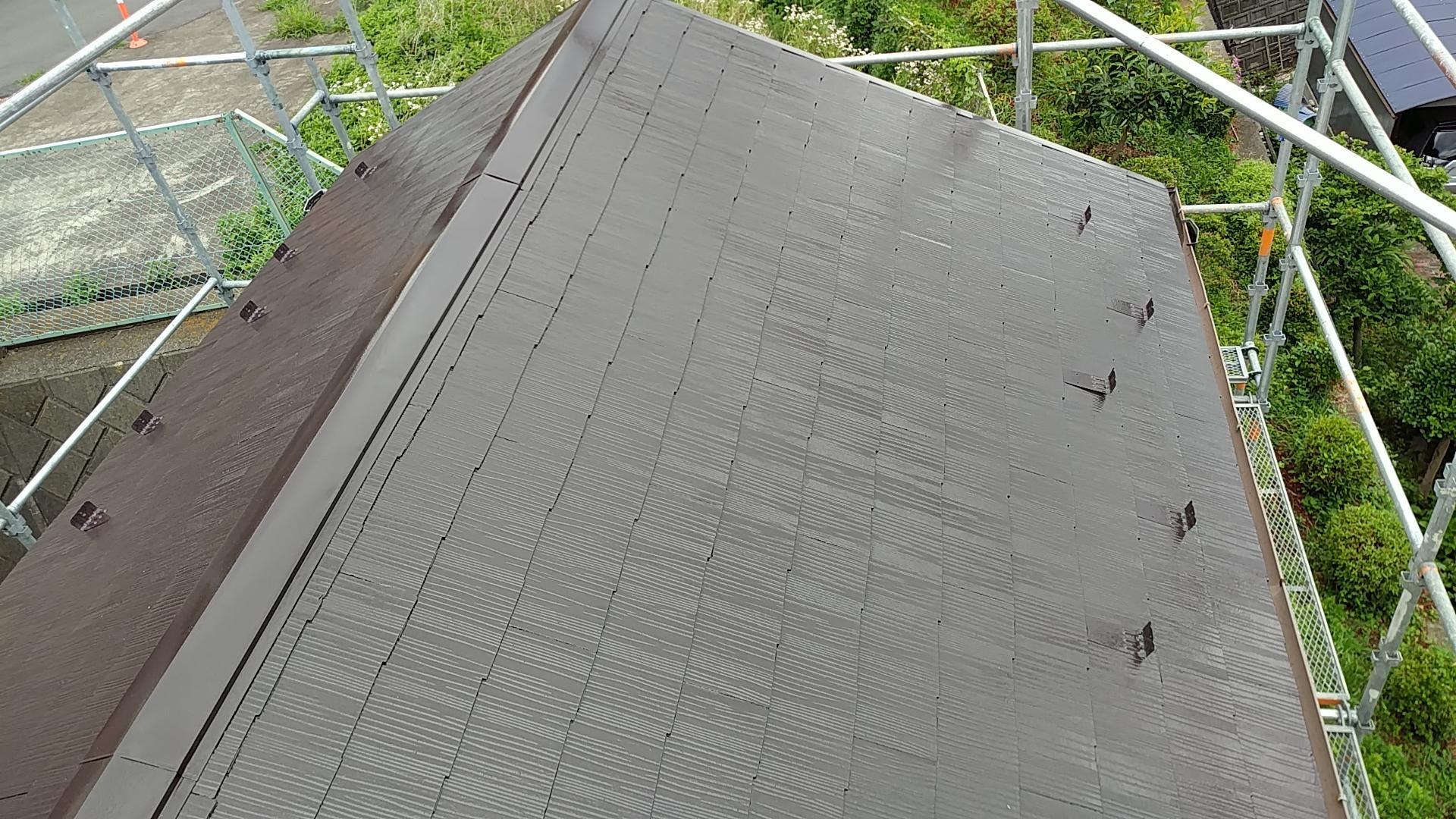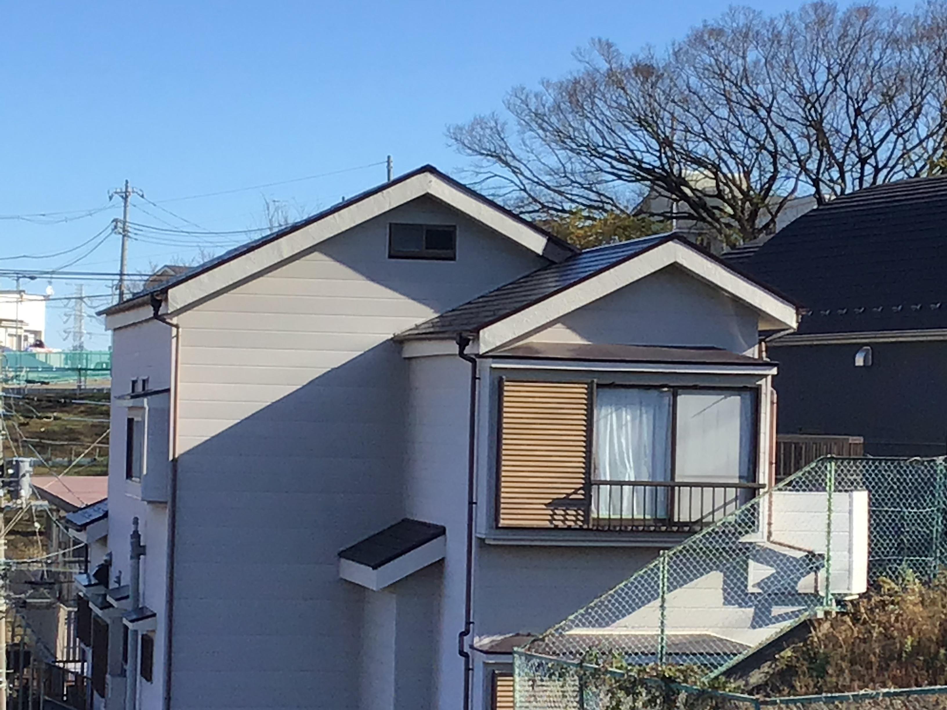 屋根の塗装工事を行いました。雨漏れ・外壁のひび割れもあったので、補修工事を行いました。