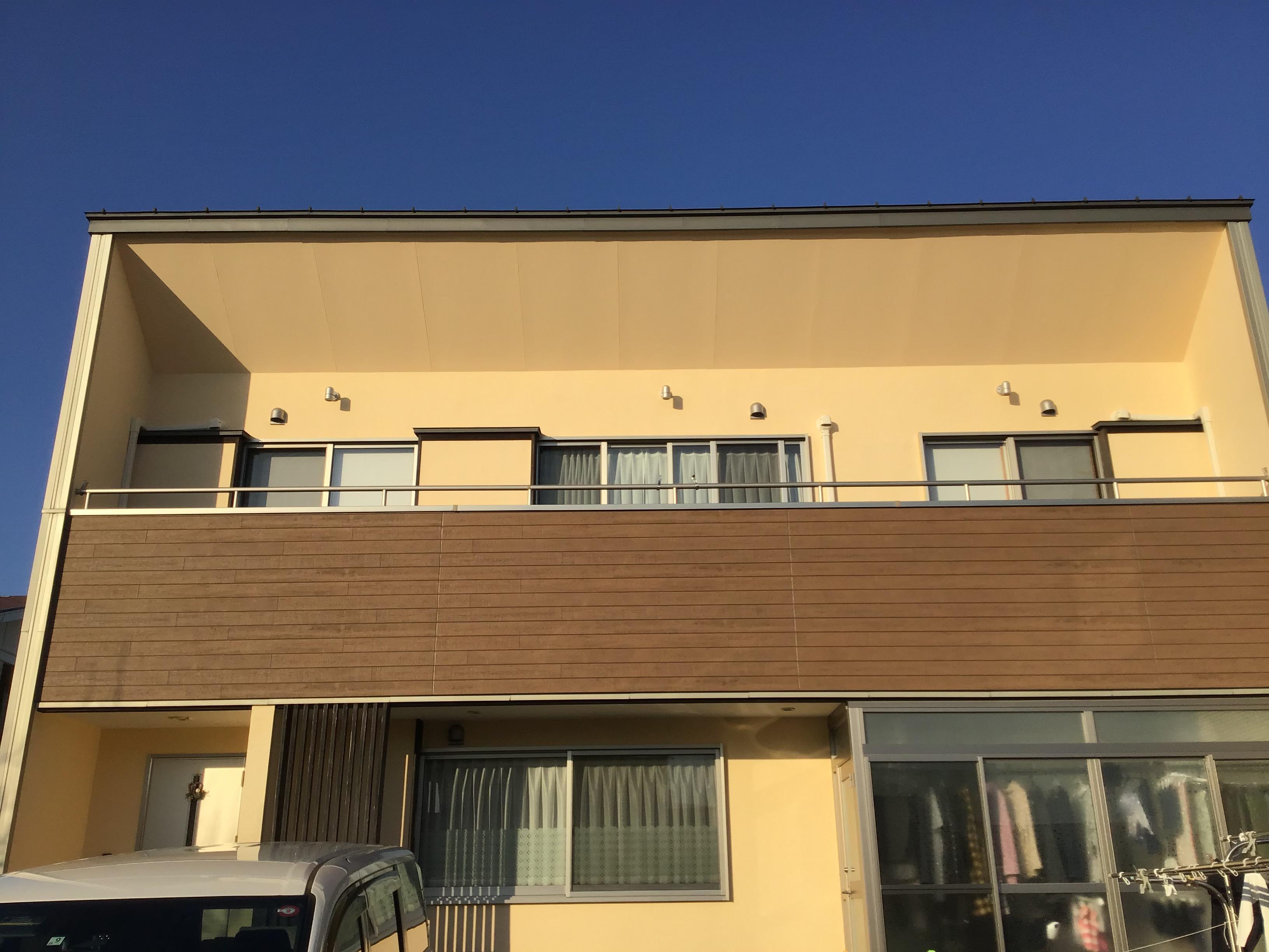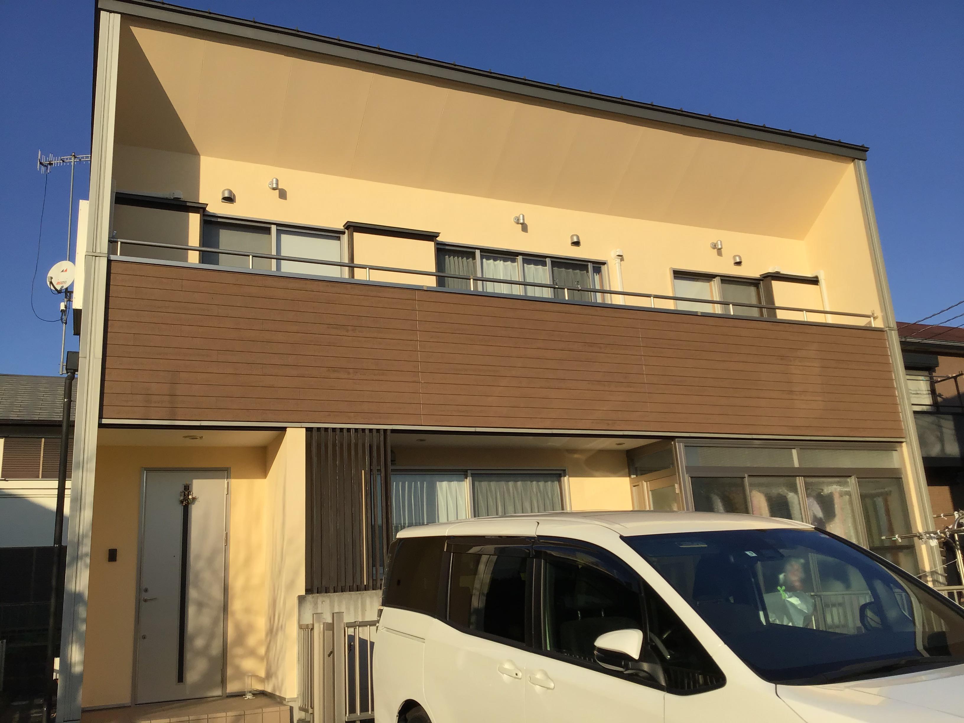 バルコニーの壁に使われていた木材が劣化してしまったので、木目調のサイディングに張り替えました。また外壁の塗り替え工事を行いました。