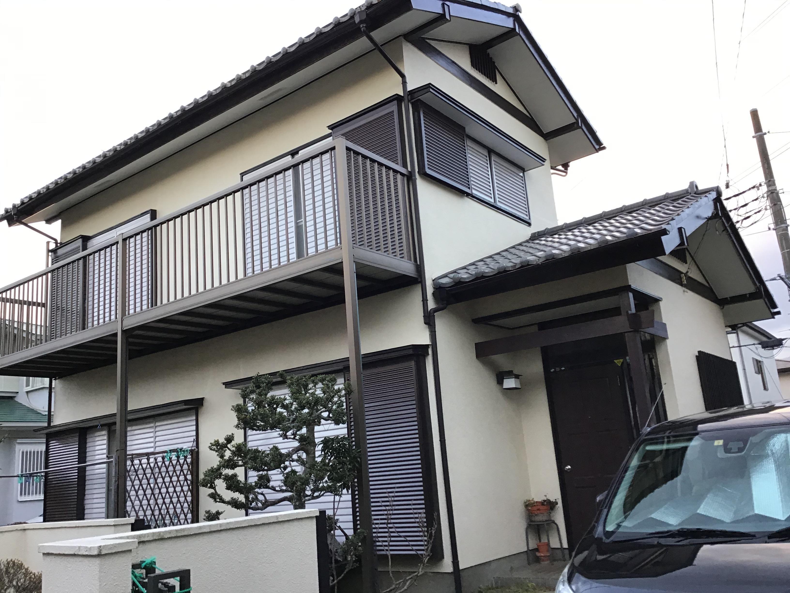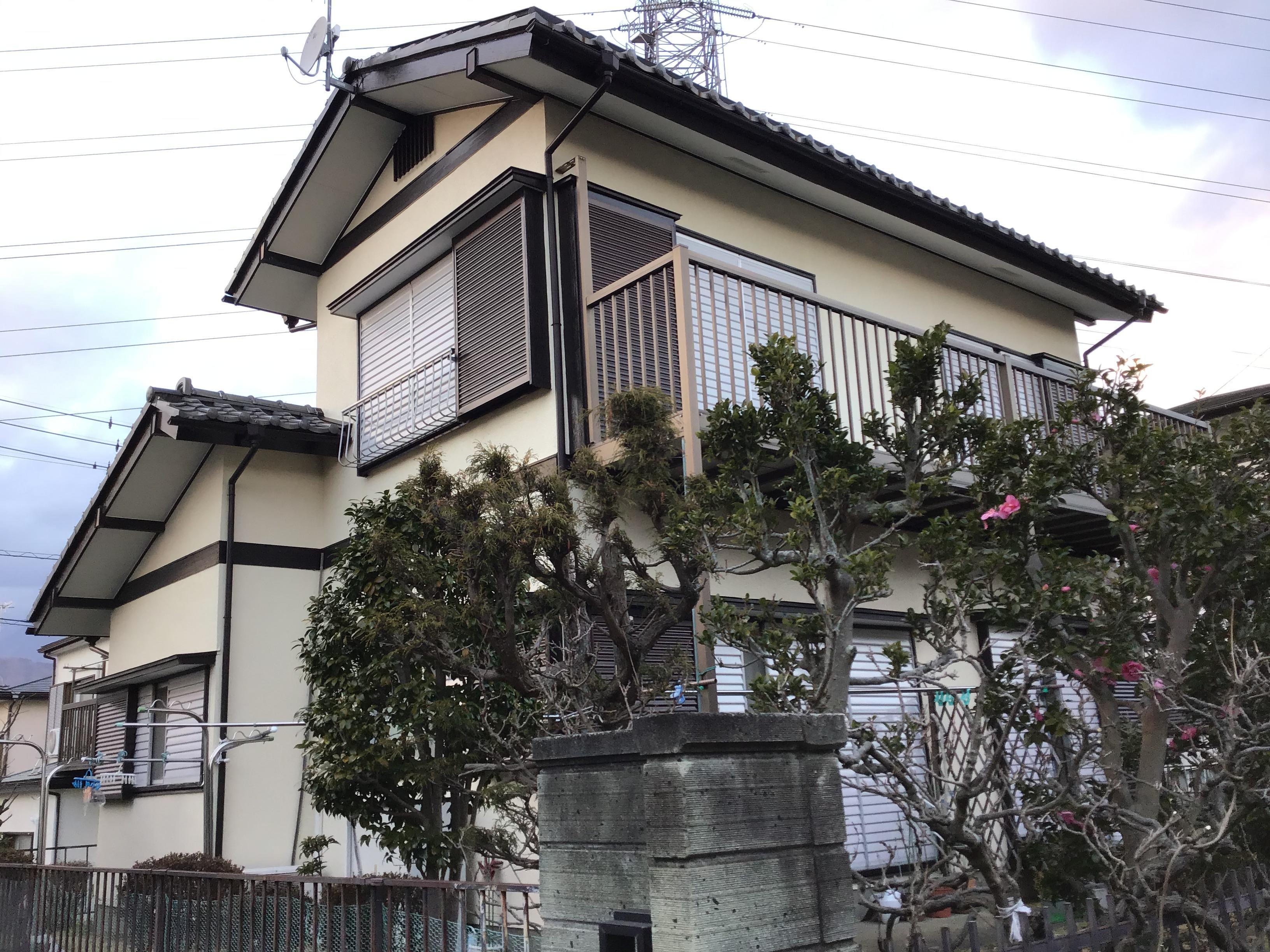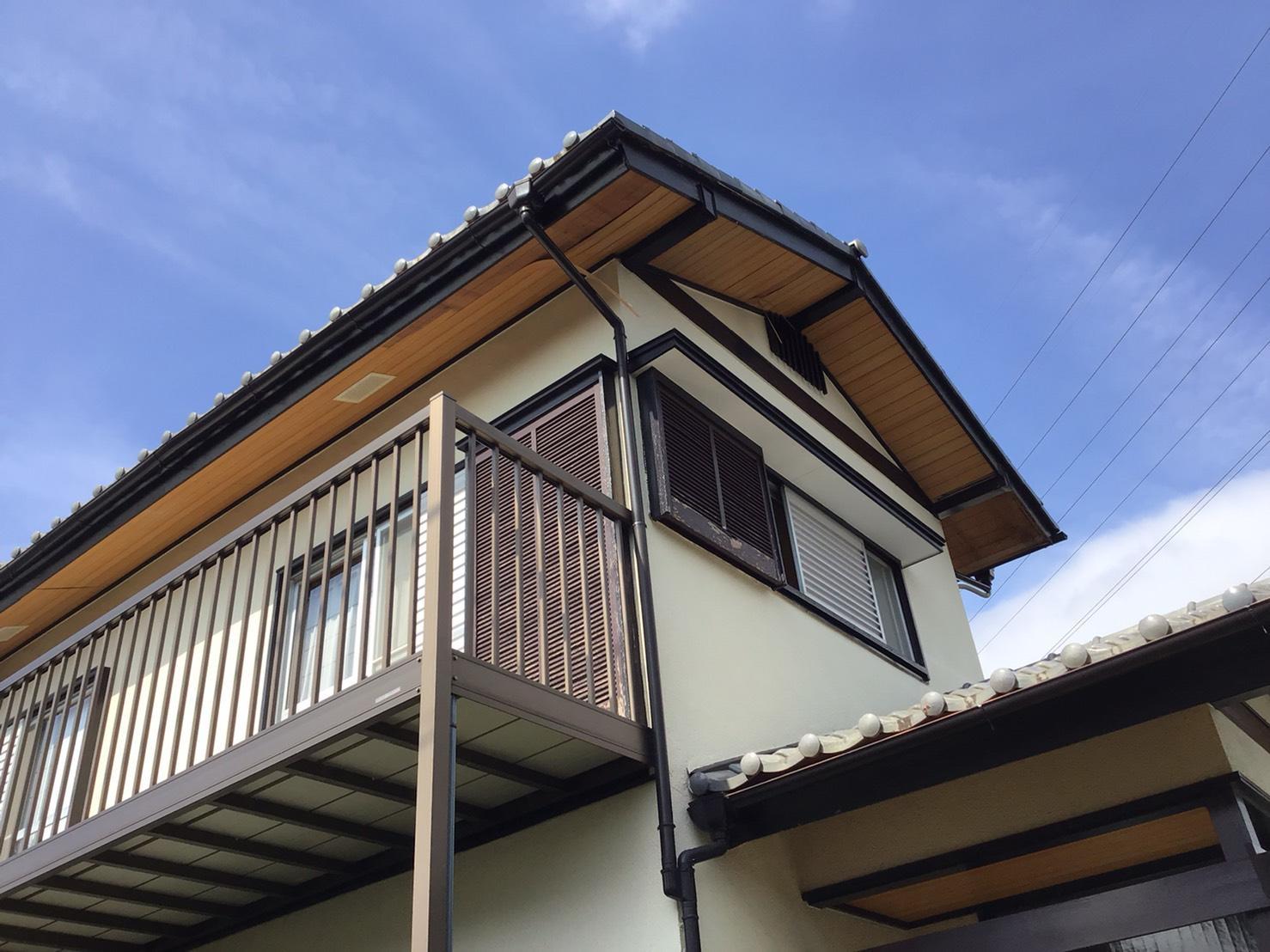 台風の影響で軒天井がはがれ、和室の壁から雨漏りが発生しました。軒天井を張替え、雨戸の戸袋補修・和室の壁を重ね塗り補修しました。