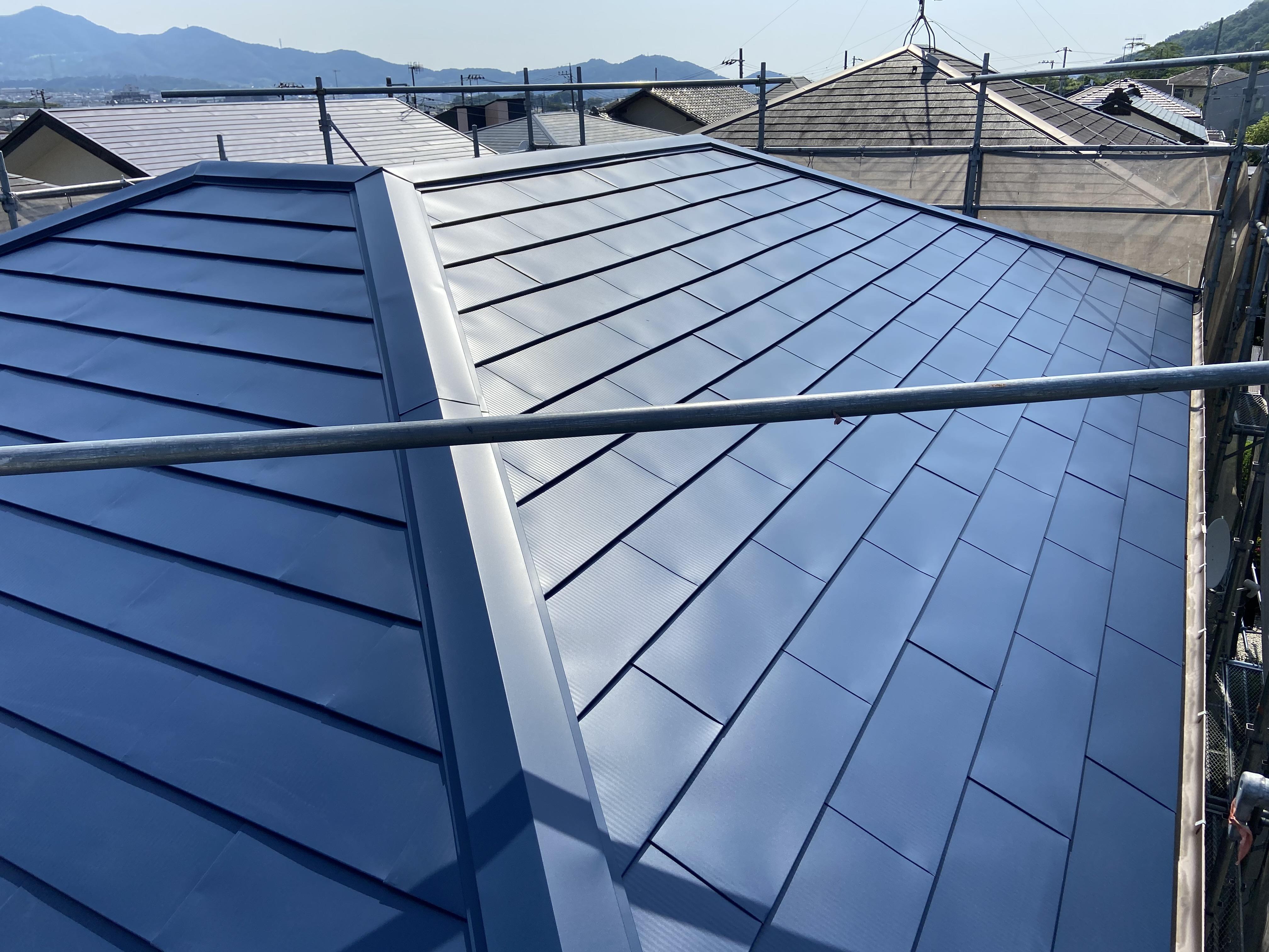 以前からお世話になっているお客様宅で屋根リフォームのご依頼をいただきました。屋根の瓦を撤去し、軽量で耐久性のあるガルバリウム鋼板の屋根材に葺き替えました。