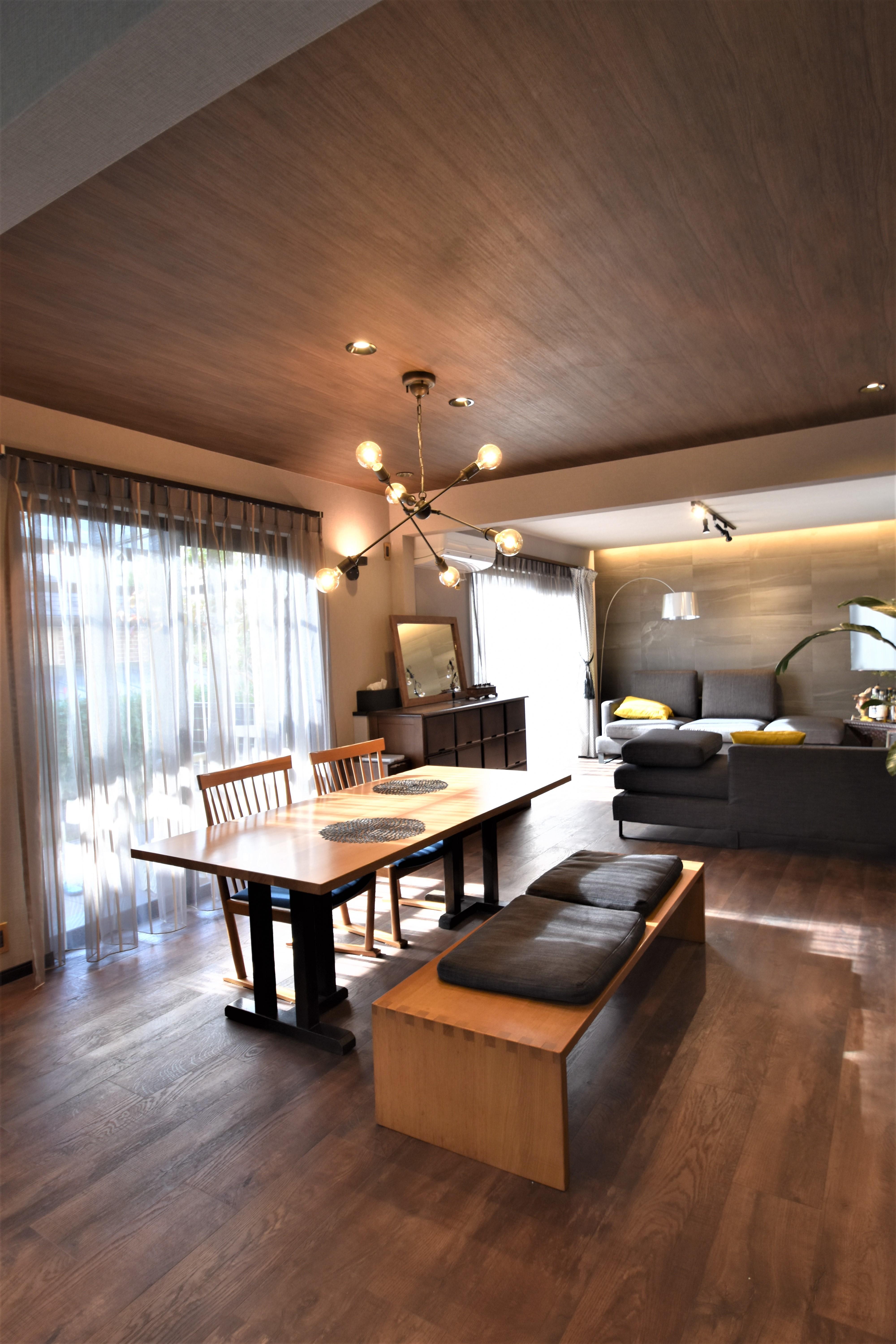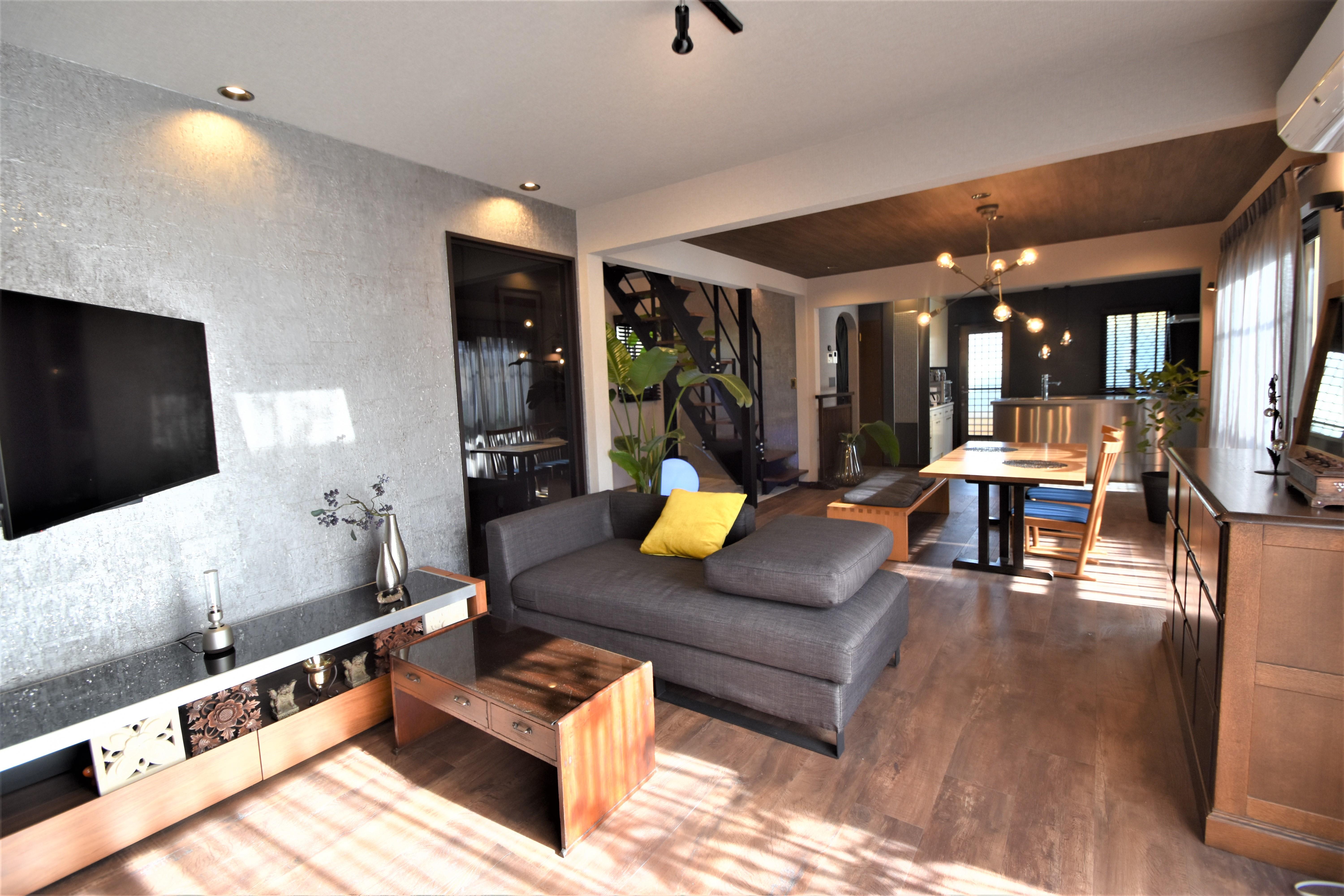2×4戸建て住宅で玄関ホール・和室・LDKで仕切られた空間を1フロアの大空間にリフォームしました。奥様がコーディネーターのお仕事をされているため、「バリ風のリゾート感のある空間にしたい。」とデザインや要望が固まっていました。壁が抜けるのか構造のチェックを設計士の方と相談し、1フロアの大空間を実現する事が出来ました。また、リフォーム後の部屋のパース図を作成し完成イメージを膨らませながら打ち合わせを行いました。