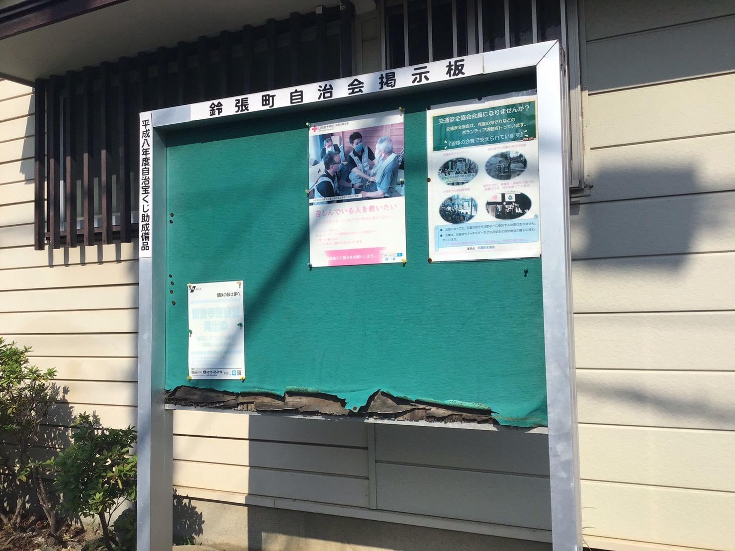 既存の掲示板が老朽化により劣化してしまったので撤去し、新規にアルミ掲示板を設置しました。