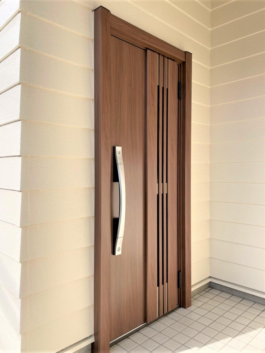 玄関ドアの交換工事を行いました。今ある枠の上から、新しい枠を取り付ける「カバー工法」なので、壁や床を傷める心配がありません。工事もたった1日で完了しました。(LIXIL リシェント)