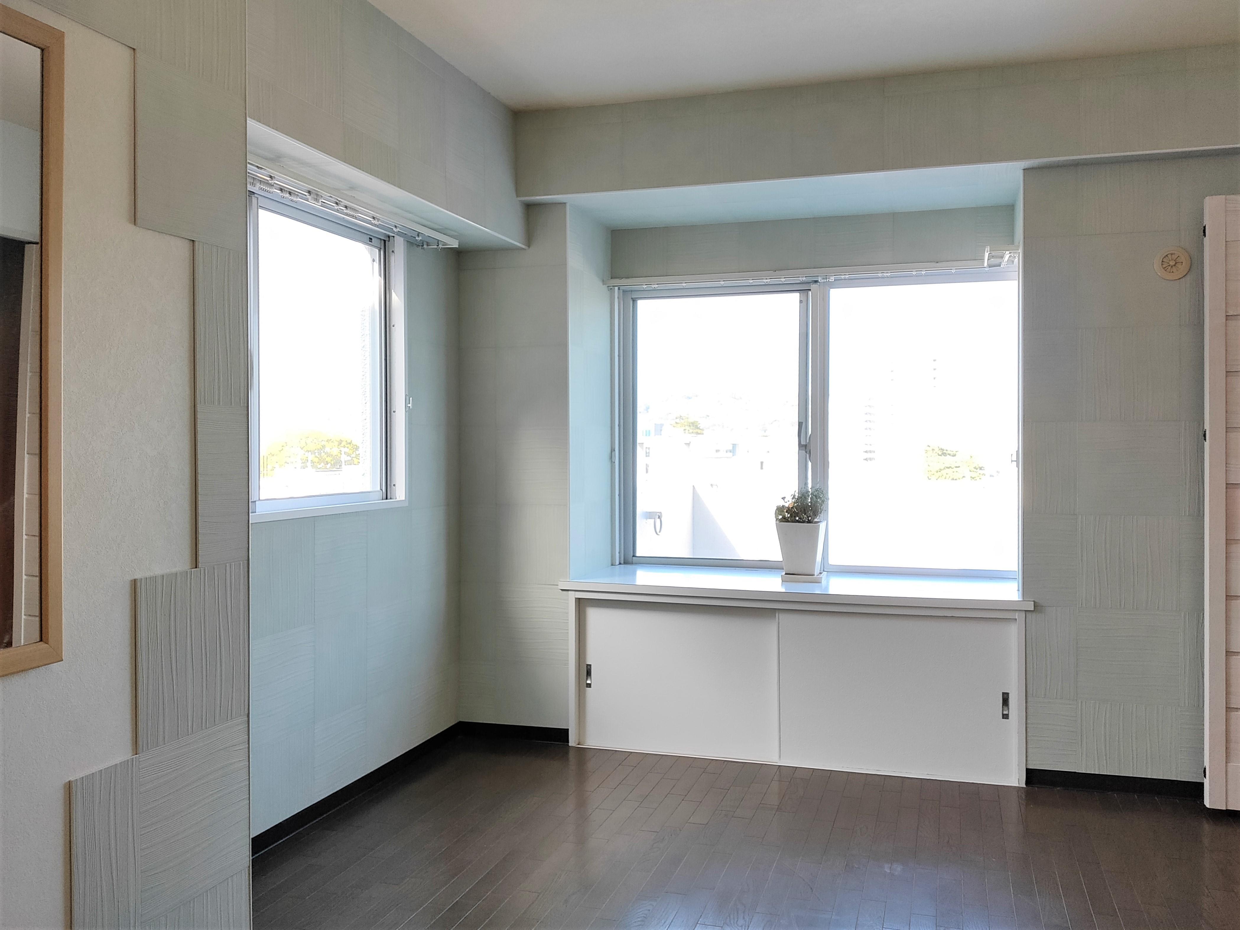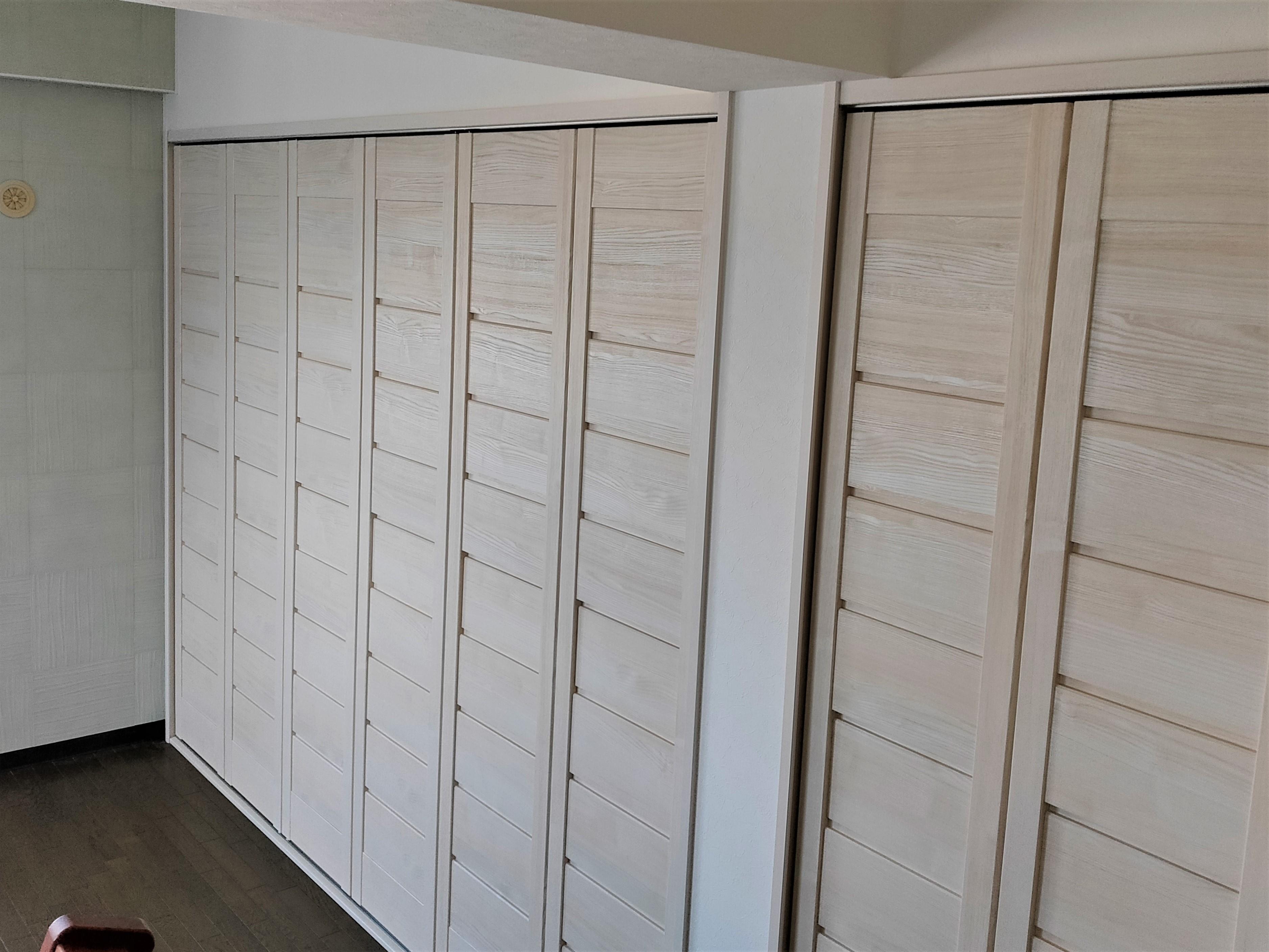 以前にもリフォーム工事をさせていただいたA様より寝室の内装リフォーム工事をご依頼いただきました。北側のお部屋で湿気がこもりやすく、壁紙がはがれたり、カビが生えてしまいました。そこで湿気を調整する機能のある壁タイルのLIXILエコカラットをご提案しました。また、クローゼット扉は通気性のある折戸を採用しました。カビ対策には空気の通りを良くして湿気がこもらないようにすることが重要です。