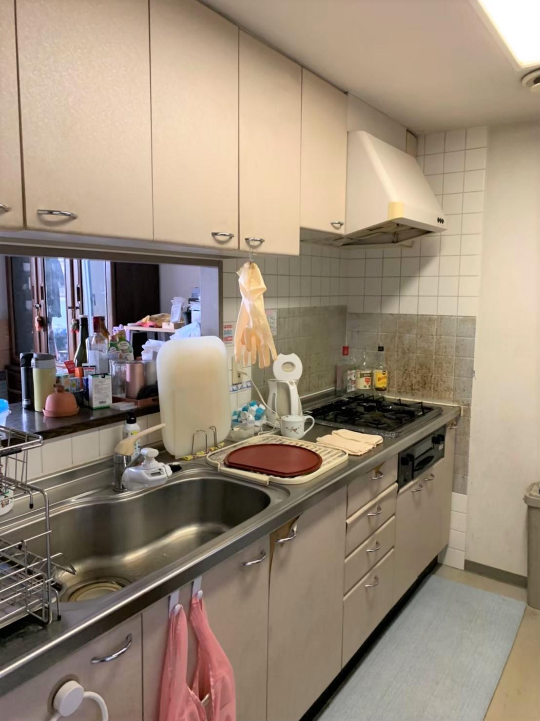 今回は約25年使用されていたキッチンの老朽化に伴いリフォームする事になりました。マンション入居当時はキッチンを選ぶ事ができなかったそうです。開き扉の収納だったで上の方の空間が空いていたり、換気扇が掃除しにくいなどと感じていましたが、あるものに合わせて使用されていました。